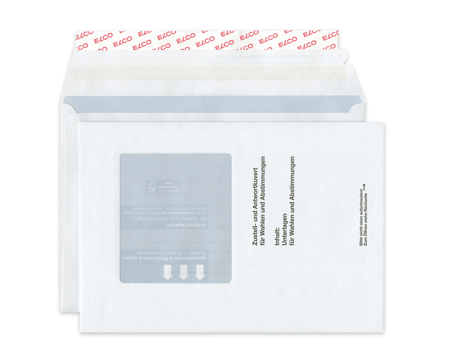 - Stimmcouvert, ELCO, 245 x 170 mm, Fenster Vorderseite links, Haftklebeverschluss+Gummiert, 110g/m2, weiss