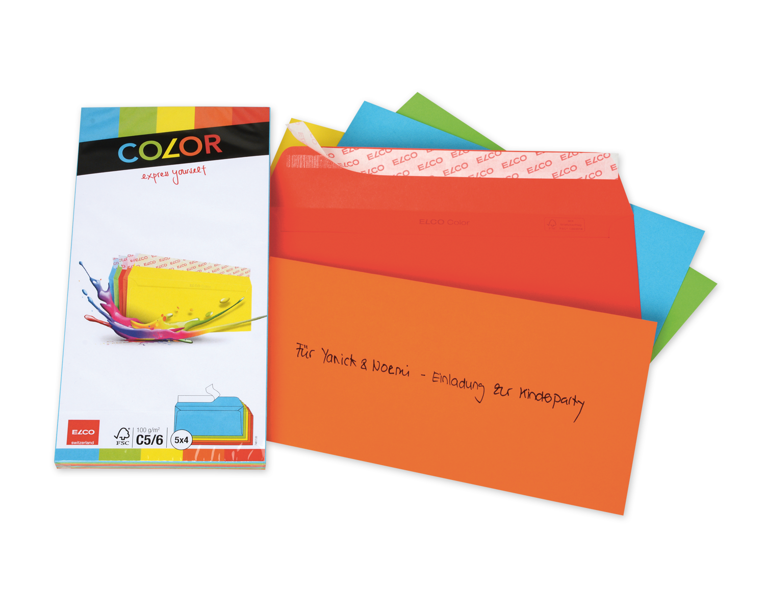 - farbenfroher FSC-Briefumschlag