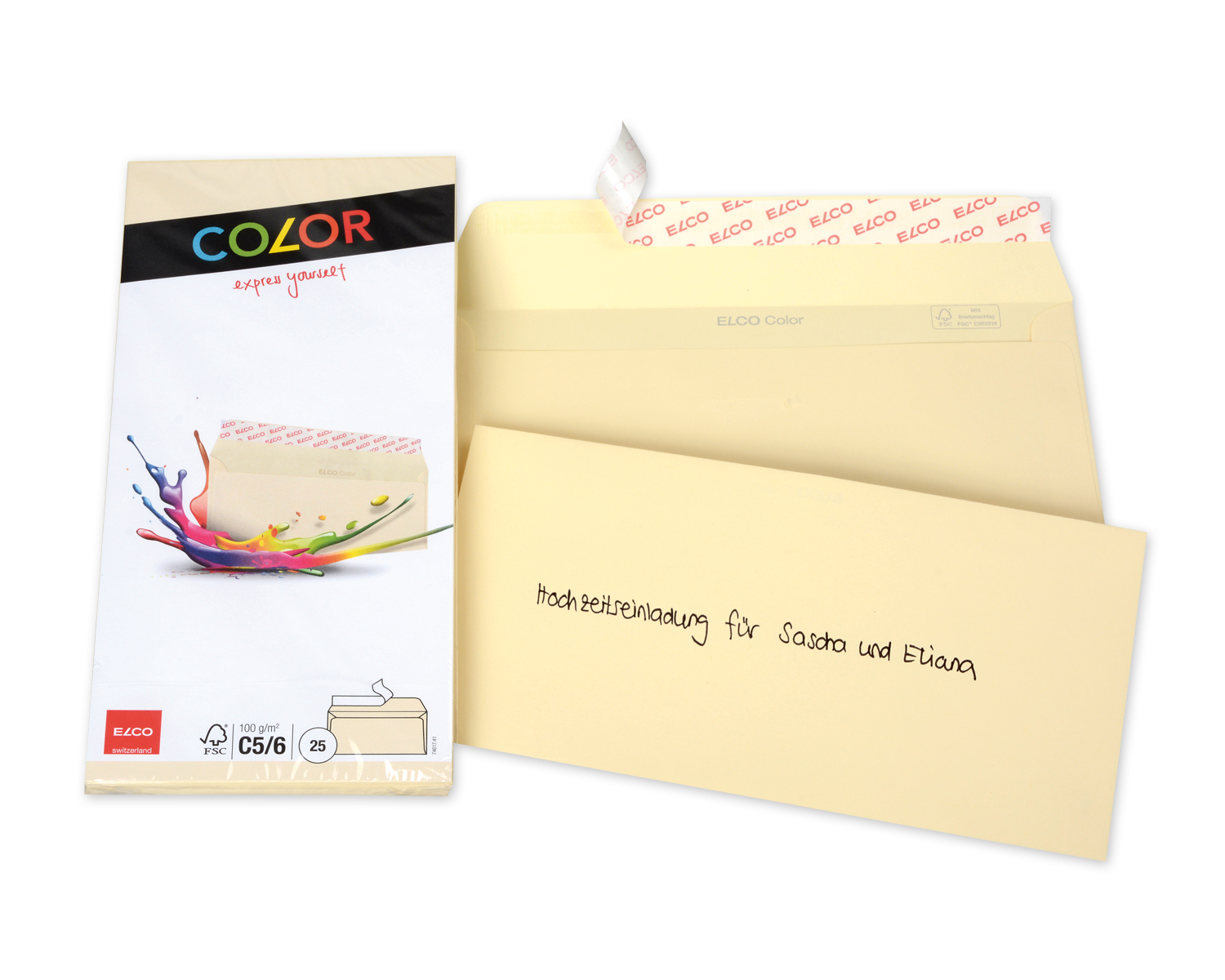 - Couvert, ELCO Color, C5/6, ohne Fenster, Haftklebeverschluss, 100g/m2, hellchamois