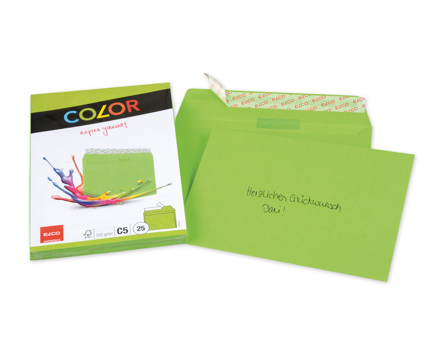 Das intensivgrüne C5 Couvert ohne Fenster und mit Haftklebeverschluss im Bund à 25 Stück. Der lebendige, FSC-zertifizierte Umschlag in einem intensiven Grün für kreative Mailings, die frisch und dynamisch wirken.