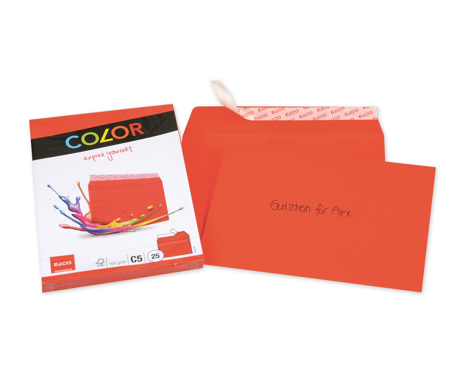 Das intensivrote C5 Couvert ohne Fenster und mit Haftklebeverschluss im Bund à 25 Stück. Der auffällige, FSC-zertifizierte Umschlag in einem kräftigen Rot für leidenschaftliche Mailings.