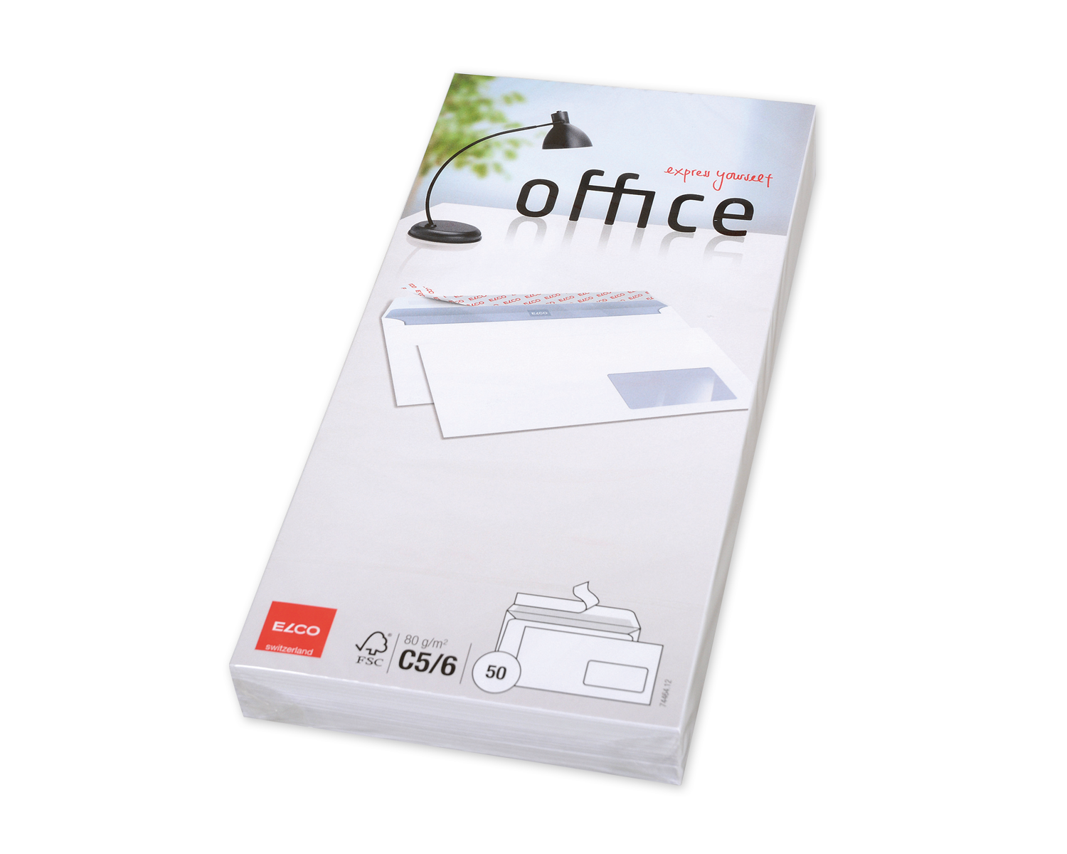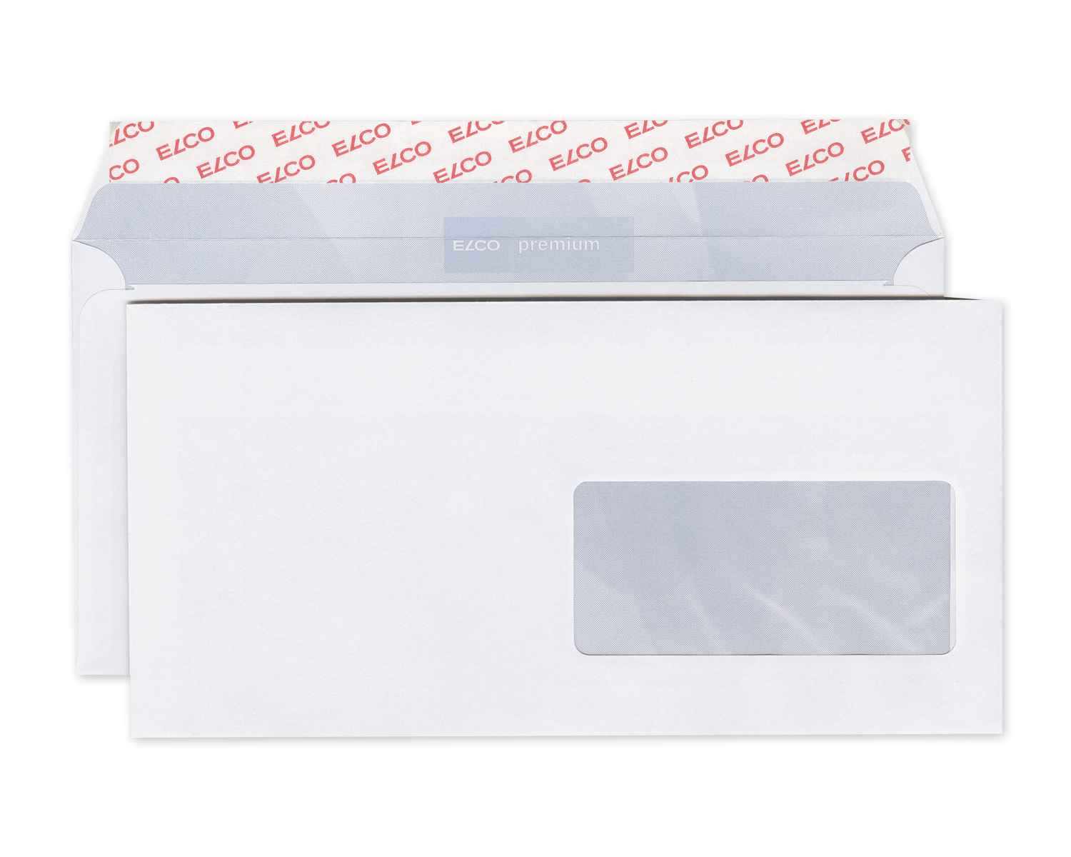 - Couvert, ELCO Office, C5/6, Fenster Vorderseite rechts, Haftklebeverschluss, 80g/m2, weiss