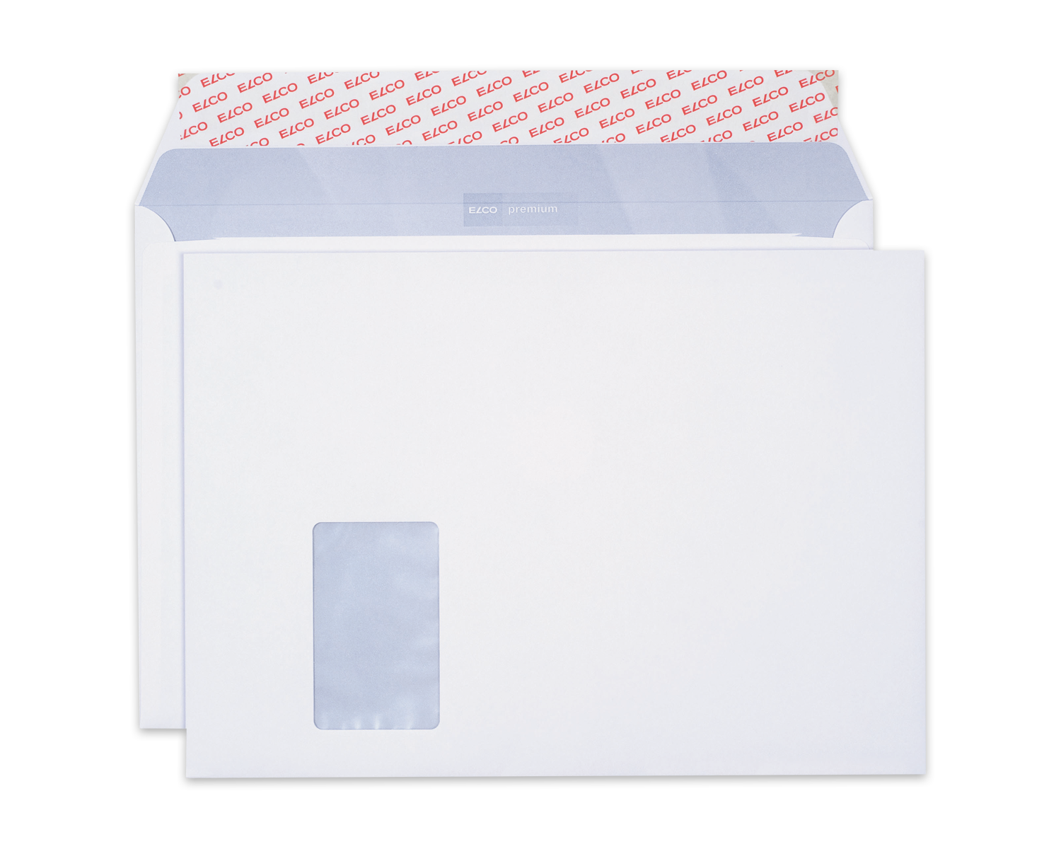 - Couvert, ELCO Premium, C4, Fenster Vorderseite links, Haftklebeverschluss, 120g/m2, weiss