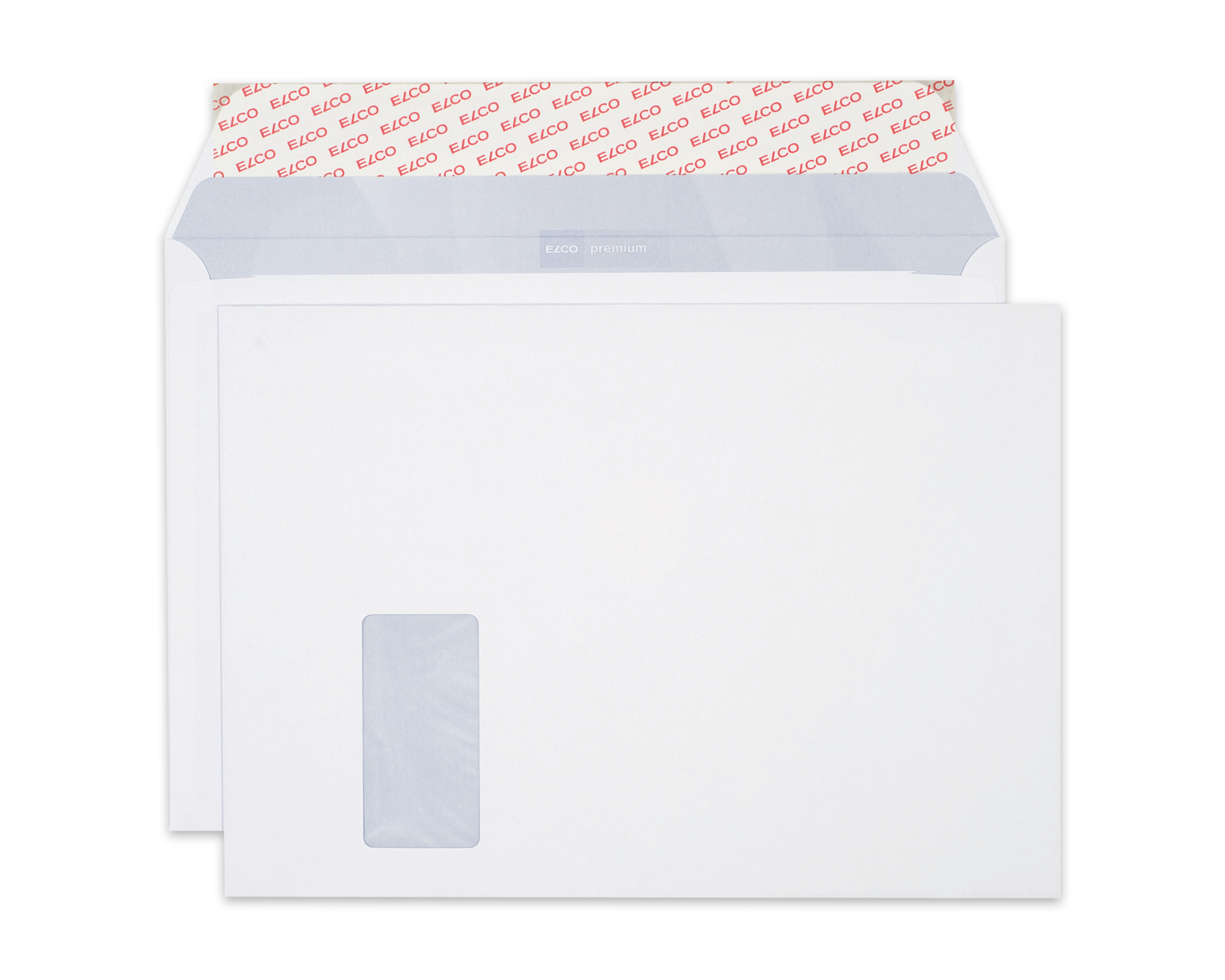 - Couvert, ELCO Premium, C4, Fenster Vorderseite links, Haftklebeverschluss, 120g/m2, weiss