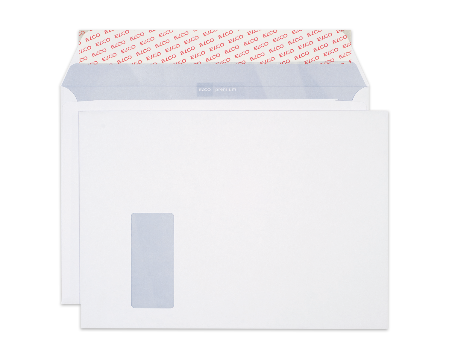 - Couvert, ELCO Premium, C4, Fenster Vorderseite links, Haftklebeverschluss, 120g/m2, weiss