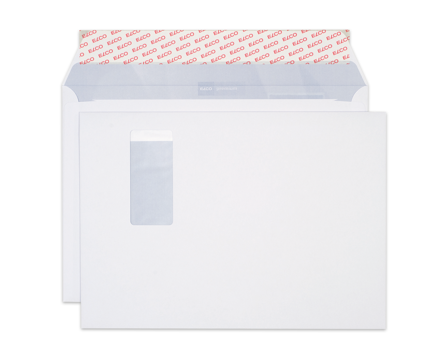 - Couvert, ELCO Premium, C4, Fenster Vorderseite rechts, Haftklebeverschluss, 120g/m2, weiss