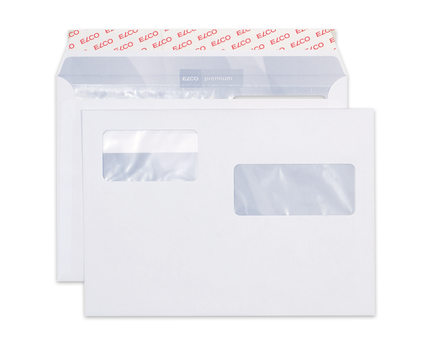 Couvert, ELCO Premium, C5, Fenster Vorderseite rechts + links, Haftklebeverschluss, 100g/m2, weiss