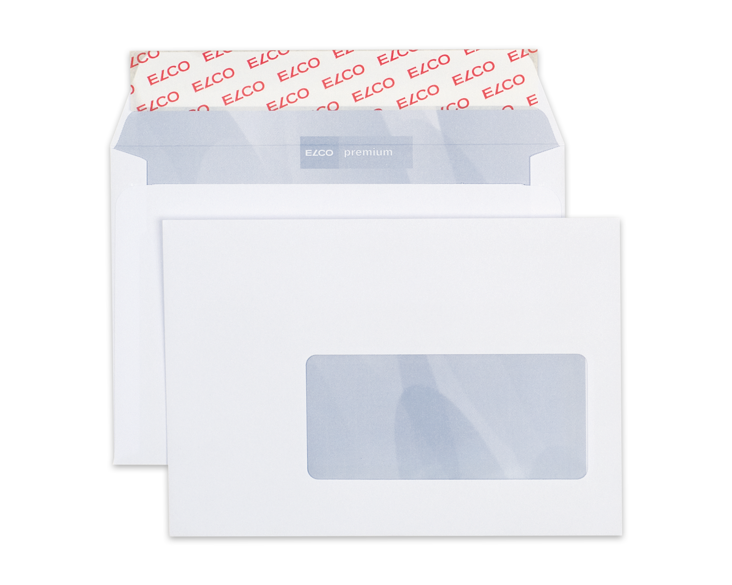 - Couvert, ELCO Premium, C6, Fenster Vorderseite rechts, Haftklebeverschluss, 100g/m2, weiss