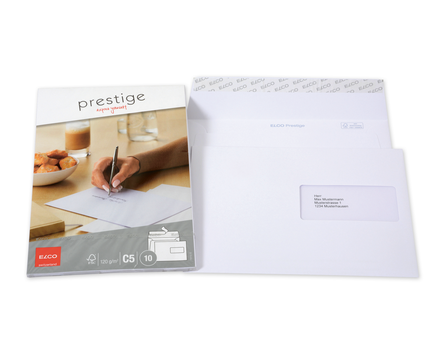 - Couvert, ELCO Prestige, C5, Fenster Vorderseite rechts, Haftklebeverschluss, 120g/m2, weiss
