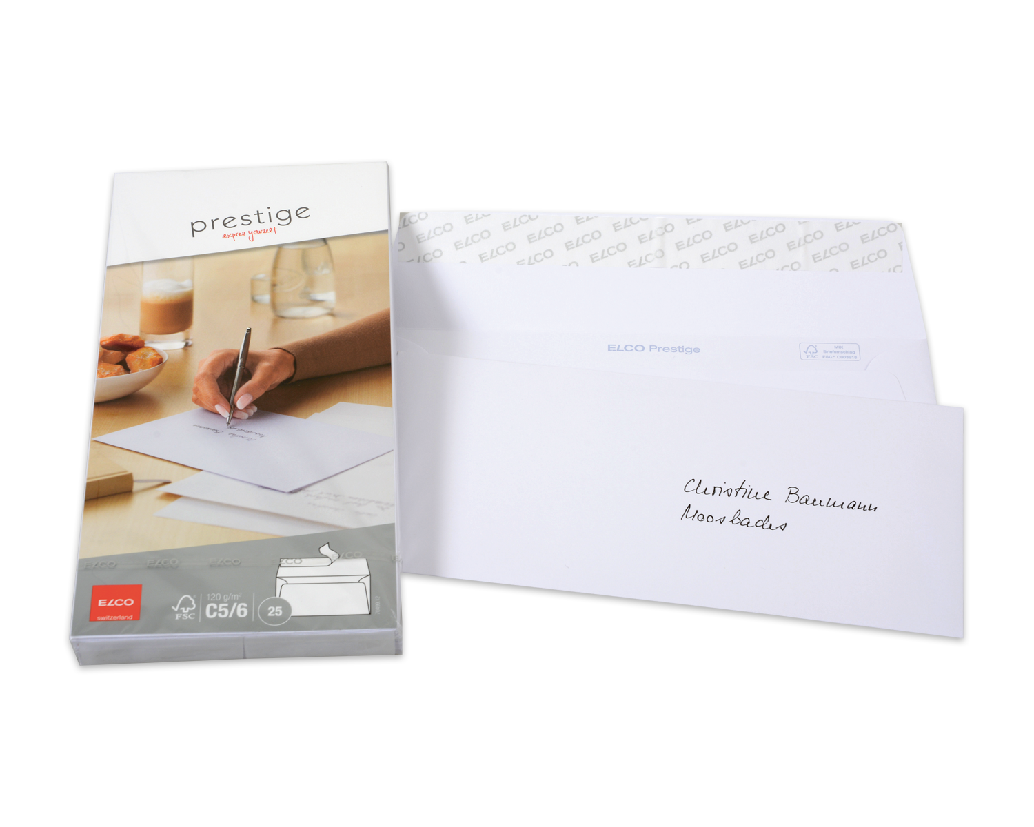 Das ELCO Prestige Kuvert C5/6 in Weiss vereint Eleganz und Funktionalität. Mit seinem edlen, hochweissen Papier (120 g/m²) und dem praktischen Haftklebeverschluss bietet es eine hervorragende Grundlage für einen professionellen Auftritt. Ideal für anspruchsvolle Geschäftskorrespondenz, unterstützt dieses Kuvert das hochwertige Image Ihres Unternehmens von Anfang an. Wählen Sie ELCO Prestige, um Ihren Briefen einen eleganten und stilvollen Rahmen zu verleihen.