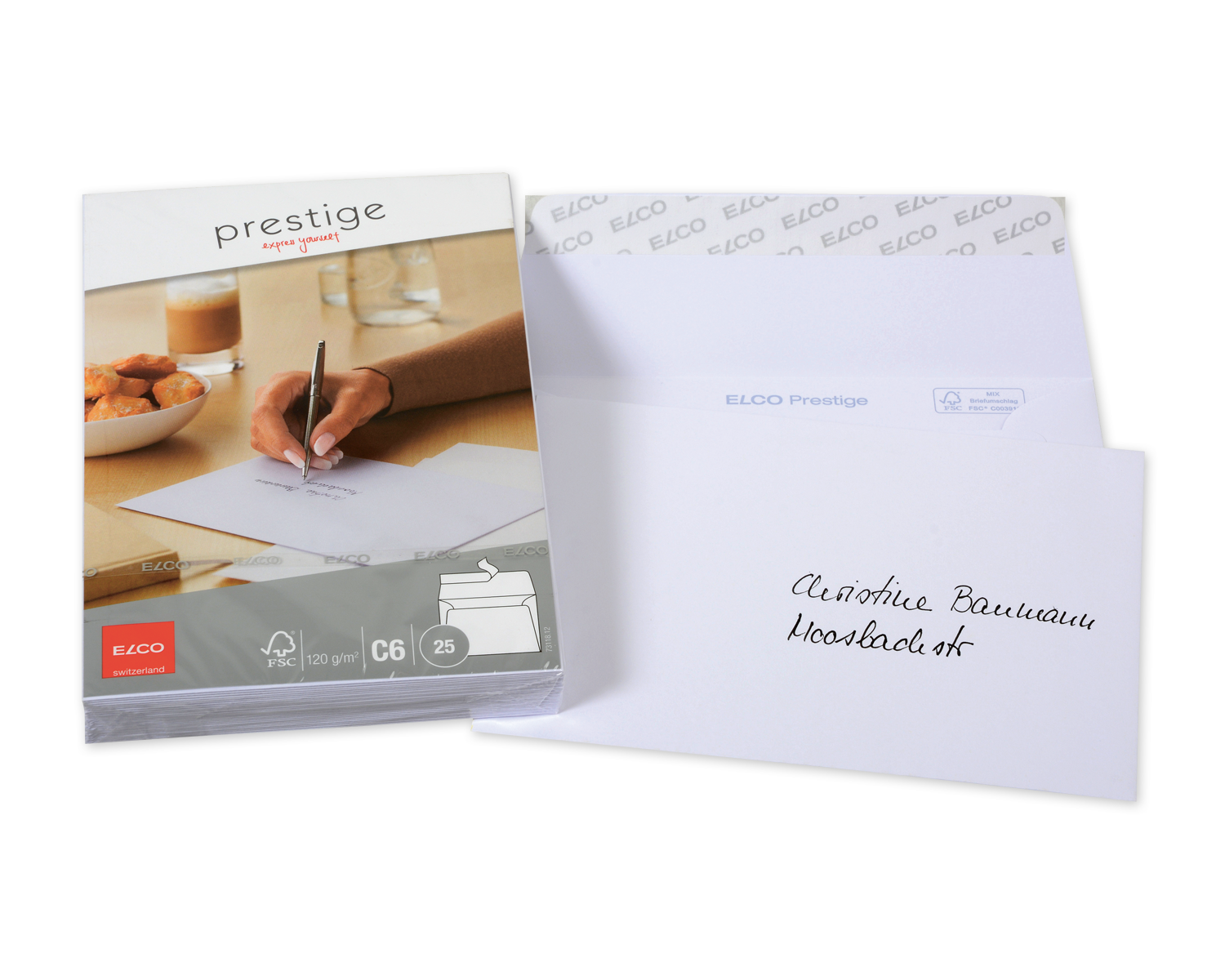 Das ELCO Prestige Kuvert C6 in Weiss vereint Eleganz und Funktionalität. Mit seinem edlen, hochweissen Papier (120 g/m²) und dem praktischen Haftklebeverschluss bietet es eine hervorragende Grundlage für einen professionellen Auftritt. Ideal für anspruchsvolle Geschäftskorrespondenz, unterstützt dieses Kuvert das hochwertige Image Ihres Unternehmens von Anfang an. Wählen Sie ELCO Prestige, um Ihren Briefen einen eleganten und stilvollen Rahmen zu verleihen.