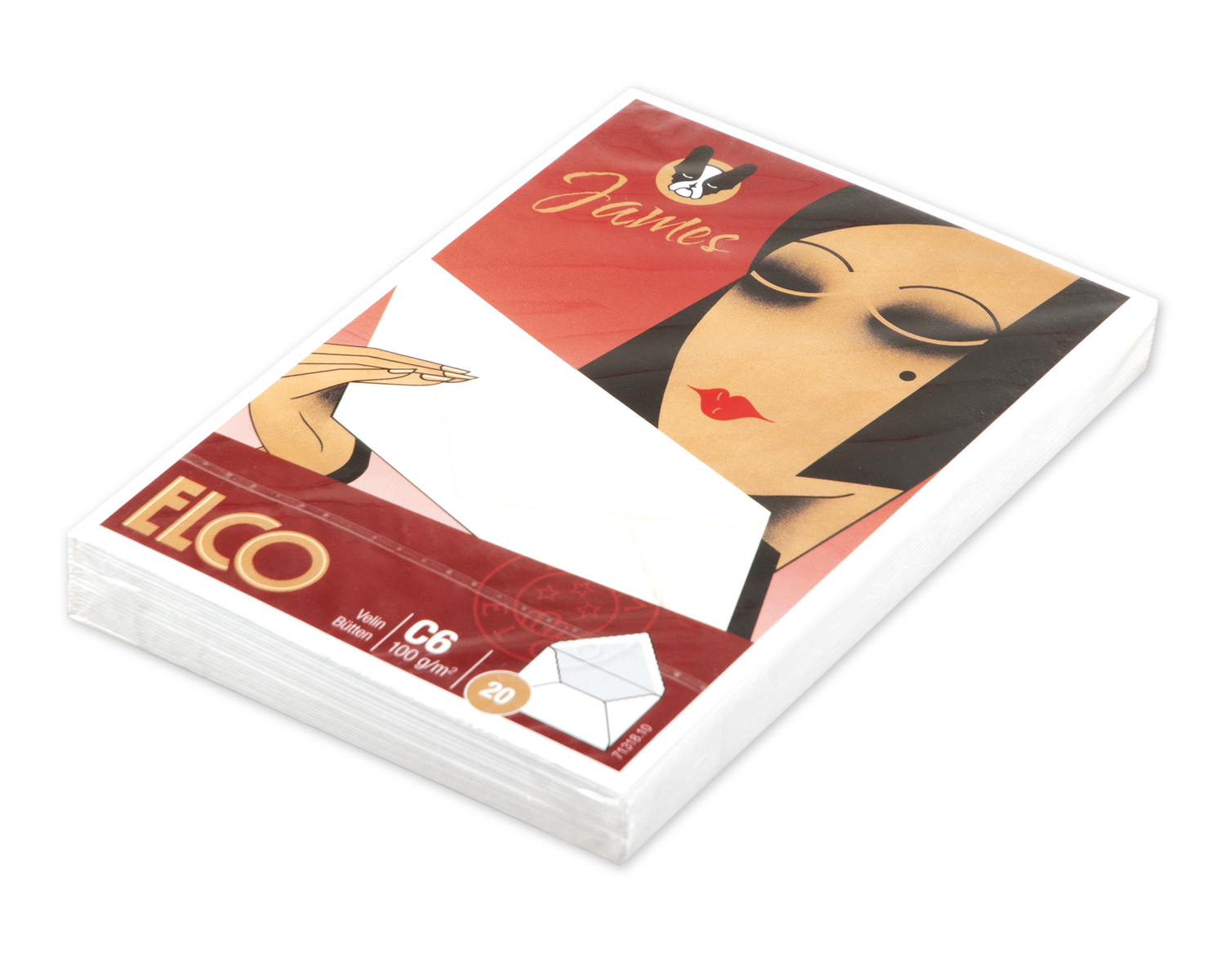 - Couvert gefüttert, ELCO James Velin, C6, ohne Fenster, Nassklebeverschluss, 100g/m2, weiss