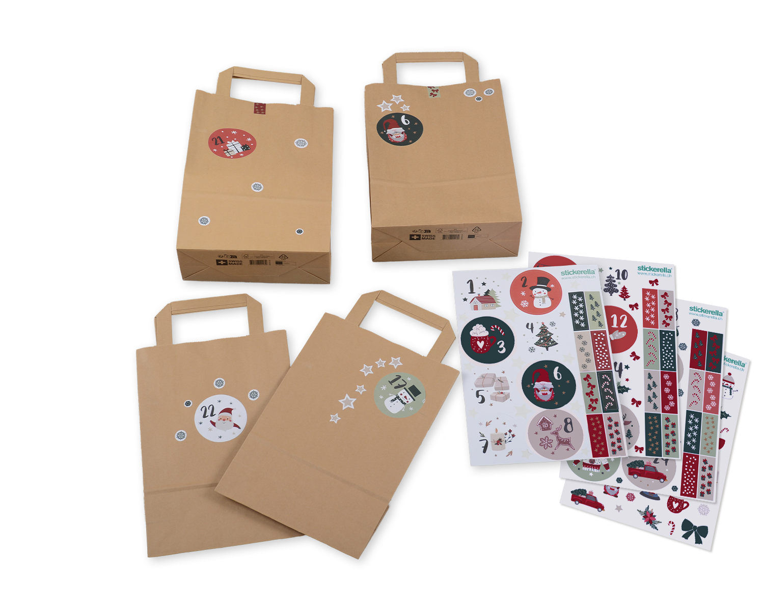 Die Taschen sind deutlich grösser als viele andere DIY-Adventskalender-Tüten. So haben auch grössere Geschenke wie kleine Weinflaschen, Tassen oder Kleidungsstücke problemlos Platz. Dank der stabilen Henkel lassen sich die Taschen zudem einfach aufhängen – für eine besonders dekorative Präsentation deines Adventskalenders. Die Sticker überzeugen durch moderne, liebevoll gezeichnete Motive und eine festliche Optik, die sowohl Kindern, Erwachsenen als auch Tierfreunden Freude bereitet.