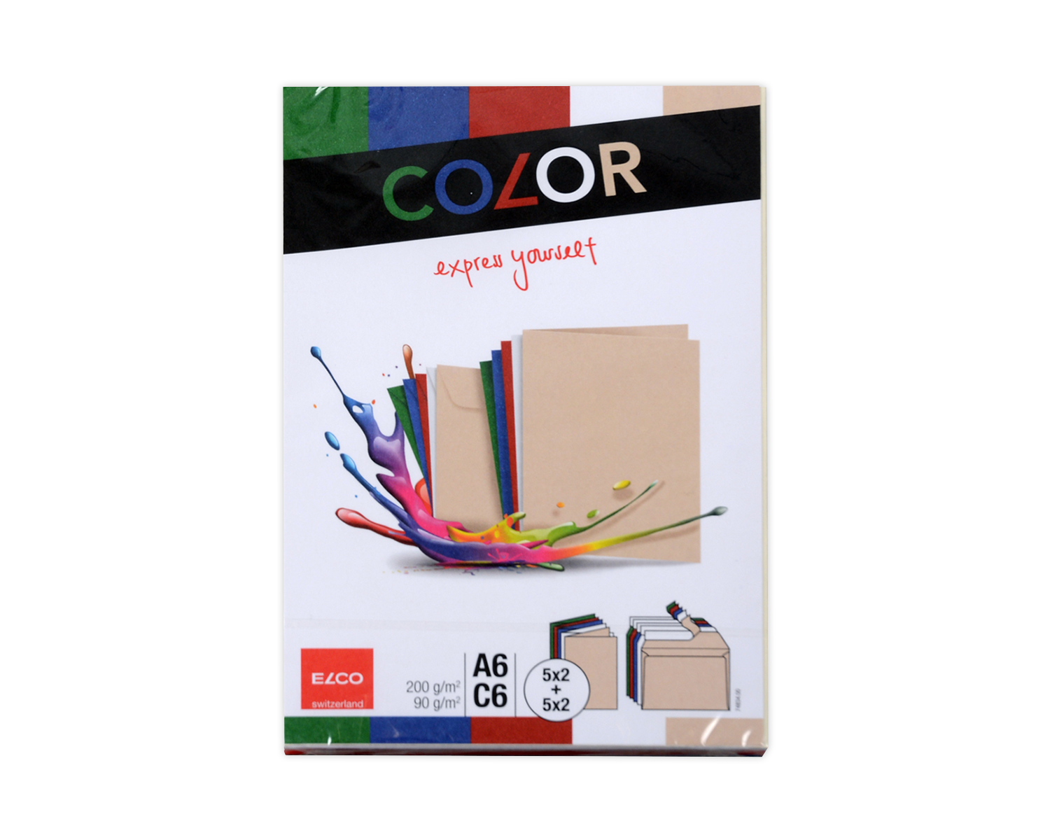 - Set Couvert + Karten, ELCO Color, A6 + C6, ohne Fenster, Haftklebeverschluss, 90 + 200g/m2, assortiert