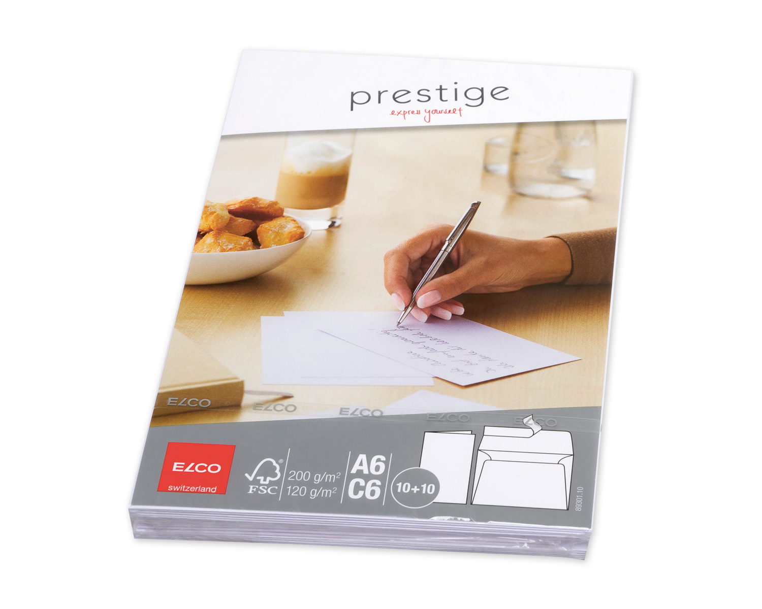 Set Couvert + Karten, ELCO Prestige, A6 + C6, ohne Fenster, Haftklebeverschluss, 120 + 200g/m2, weiss