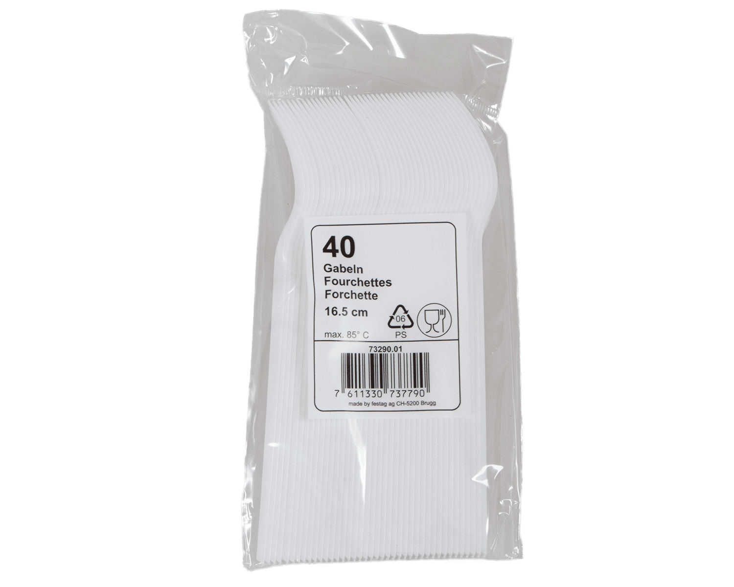Unsere praktischen, weissen Gabeln aus Polystyrol (PS) sind mit einer Länge von 16,5 cm ideal für jede Mahlzeit. Hergestellt aus robustem Kunststoff, sind die Gabeln beliebt für grosse und kleine Anlässe oder unterwegs.