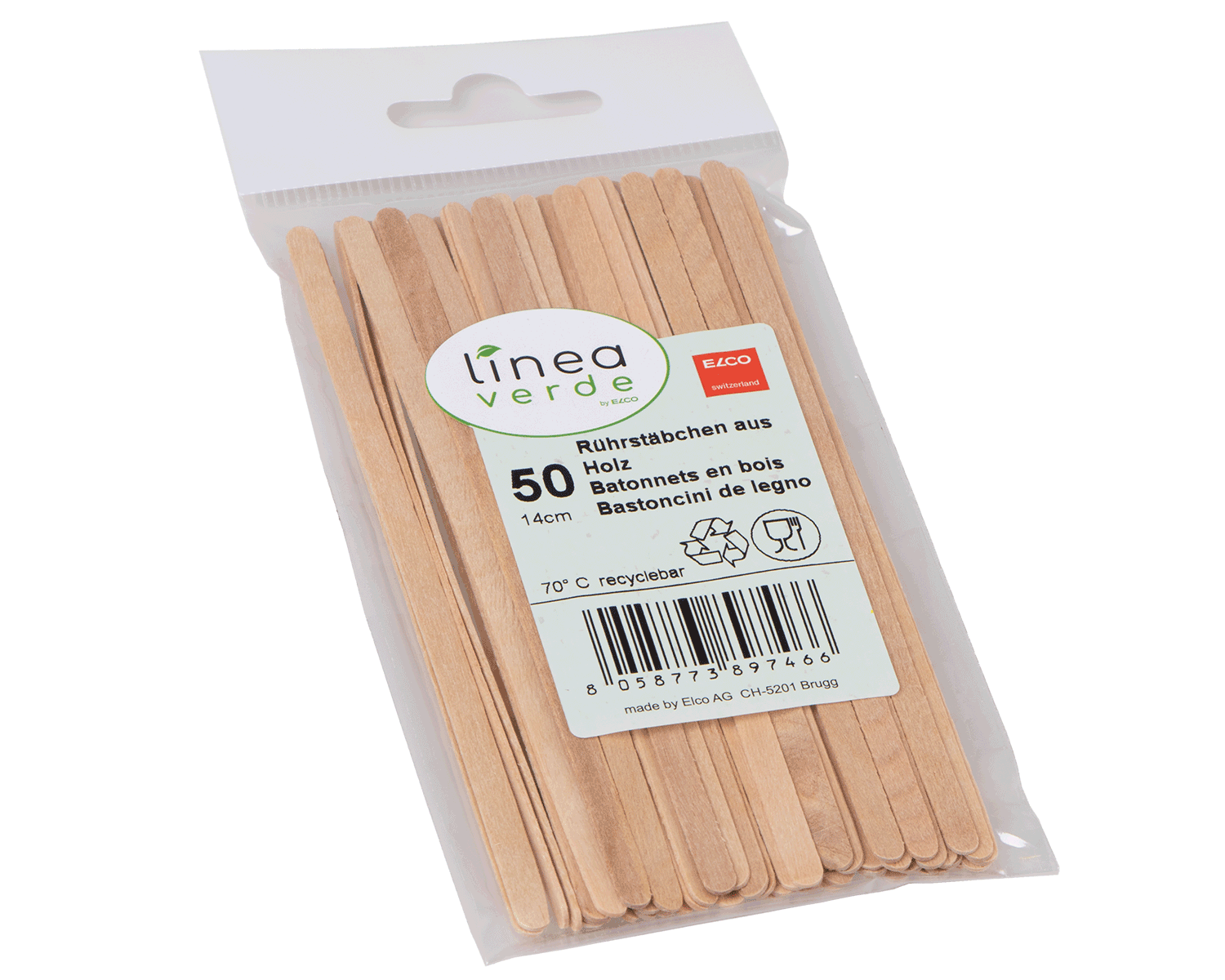 Soll es kein Löffel sein, dann sind unsere hochwertigen Rührstäbli aus Holz perfekt für Sie. Sie sind glatt und splitterfrei und eignen sich mit 14 cm Länge auch für grosse Becher. Diese umweltfreundlichen Stäbli sind aus nachwachsenden Rohstoffen hergestellt und biologisch abbaubar. Jede Packung enthält 50 stabile und elegante Rührstäbli.