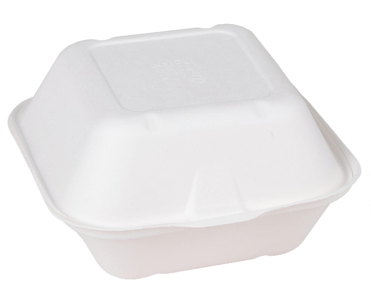 Die praktische, weisse BurgerBox ist die ideale Lösung im Take Away-Bereich. Mit Massen von 13,5 x 13,5 x 7,8 cm bietet sie ausreichend Platz für Ihren Lieblingsburger. Hergestellt aus umweltfreundlichem Zuckerrohr ist sie nachhaltig und temperaturbeständig. Ideal für den sofortigen Verzehr oder unterwegs. Bitte beachten Sie, nicht für Fondue und Raclette geeignet.