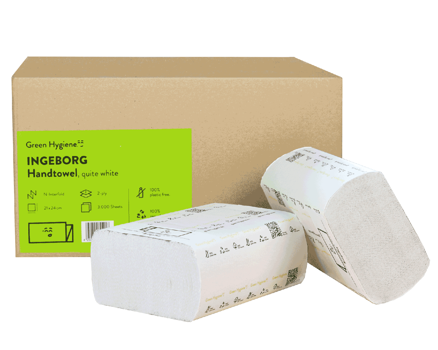 Die Papierhandtücher "Ingeborg" von Green Hygiene bestechen durch ihre ausgezeichnete Nachhaltigkeit. Die Produktion erfolgt zu 100% CO2-Neutral und unter alleiniger Verwendung von recyceltem Altpapier. Gleichermassen ökologisch ist die Verpackung, bei der vollständig auf Plastik verzichtet wird. Ingeborg ist somit zu 100% Plastikfrei. Das ideale Papierhandtuch für den umweltbewussten Hygienebereich von Raststätten, öffentlichen Einrichtungen und Grossveranstaltungen.