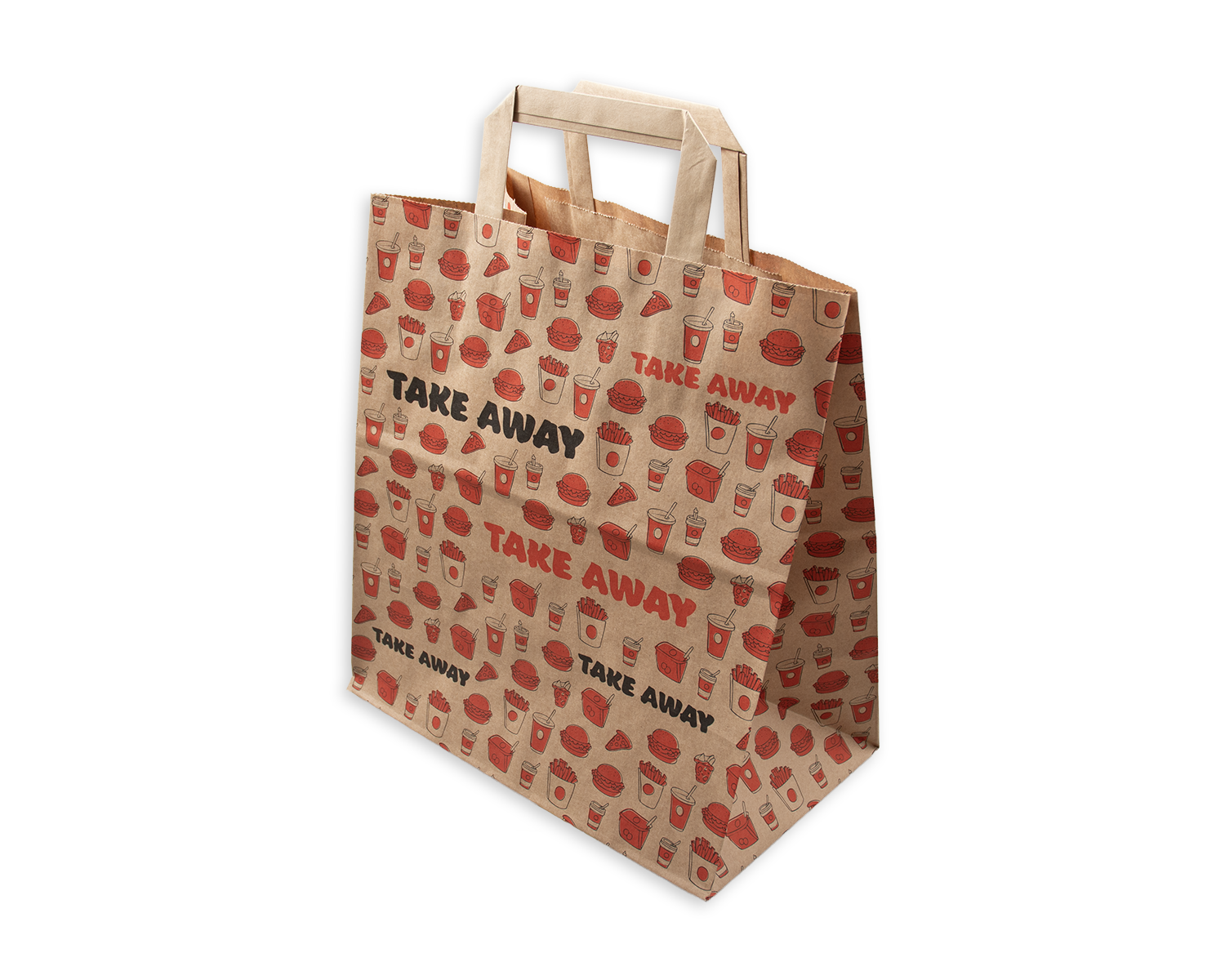 Praktisch, stabil und umweltfreundlich – unsere braune Take Away Papiertasche ist der ideale Begleiter für Gastronomie, Food-Trucks, Bäckereien oder Take-away-Betriebe. Mit ihrem natürlichen Look und dem modernen „TAKE AWAY“-Design verbindet sie Funktionalität mit Stil. Dank der stabilen Flachhenkel lässt sich auch schwereres Essen sicher transportieren – ob Lunchbox, Burger-Menü oder Coffee-to-go. Das nachhaltige Kraftpapier sorgt für eine robuste Haptik und ist vollständig recycelbar.