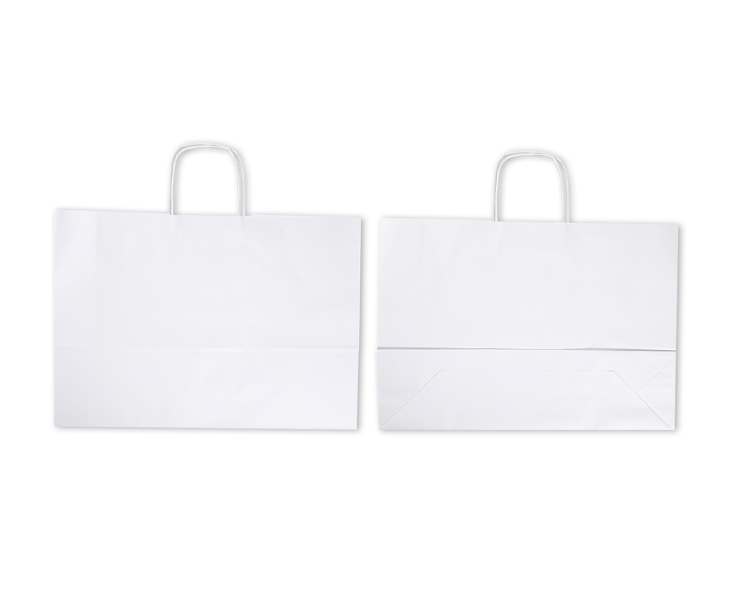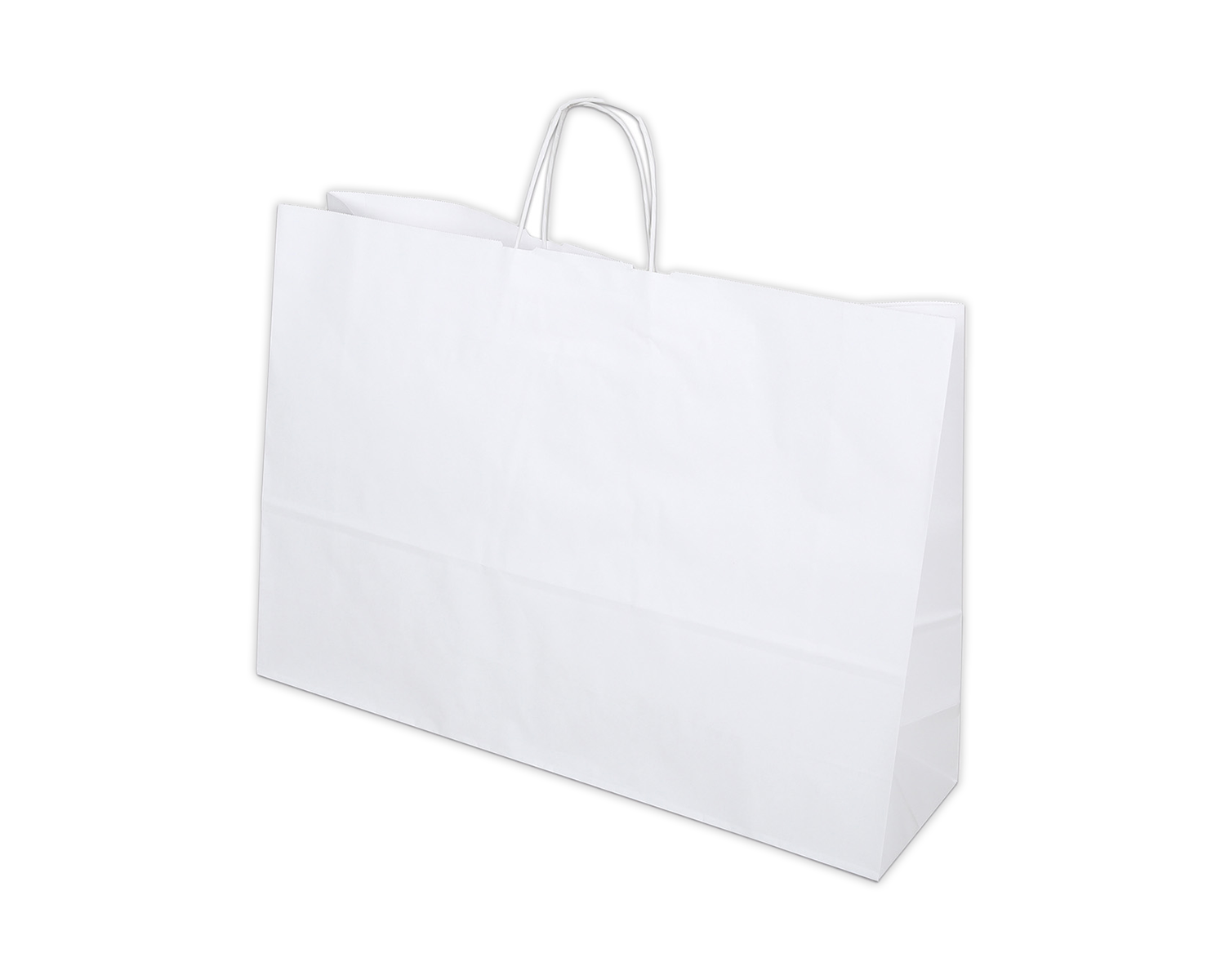 Entdecken Sie unsere vielseitige weisse Papiertasche mit gedrehter Kordel 55 x 15 x 39 cm, gefertigt aus robustem Kraftpapier mit einer Stärke von 110 g/m². Diese Tasche eignet sich perfekt für verschiedenste Anwendungen wie z.B. Take-Away. Stabil, praktisch und nachhaltig – die ideale Wahl für Ihren Alltag.