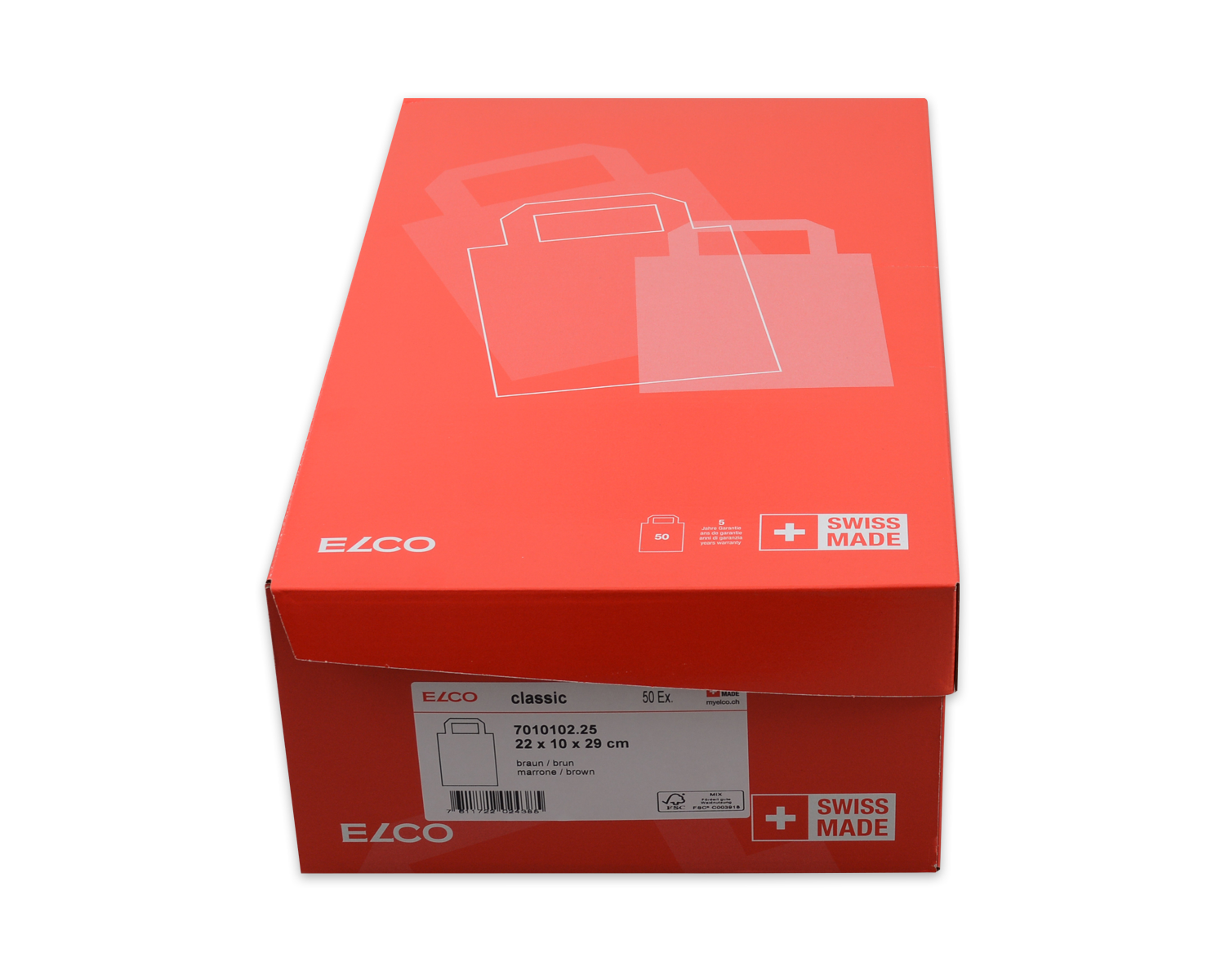 Die mittlere Grösse dieser SWISSMADE Papiertasche eignet sich hervorragend für den Transport von Büchern, Accessoires oder Modeartikeln. Ihre robuste Bauweise und der praktische Flachhenkel machen sie zum idealen Begleiter für den Einzelhandel. Die Tragetaschen werden in einer attraktiven roten Box zu je 50 Stück geliefert, was sie nicht nur ideal für den Eigenbedarf, sondern auch bestens für den Weiterverkauf geeignet macht.