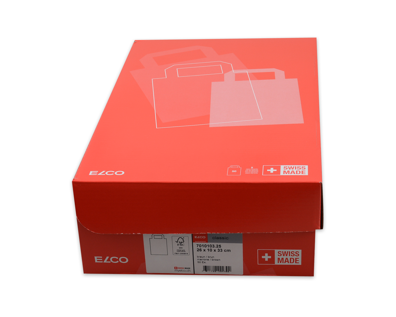 Diese vielseitige Papiertasche bietet ausreichend Platz für grössere Produkte wie Kleidung oder Lebensmittel. Sie ist eine nachhaltige Alternative für den täglichen Einkauf und überzeugt durch Schweizer Qualität. Die Tragetaschen werden in einer attraktiven roten Box zu je 50 Stück geliefert, was sie nicht nur ideal für den Eigenbedarf, sondern auch bestens für den Weiterverkauf geeignet macht.