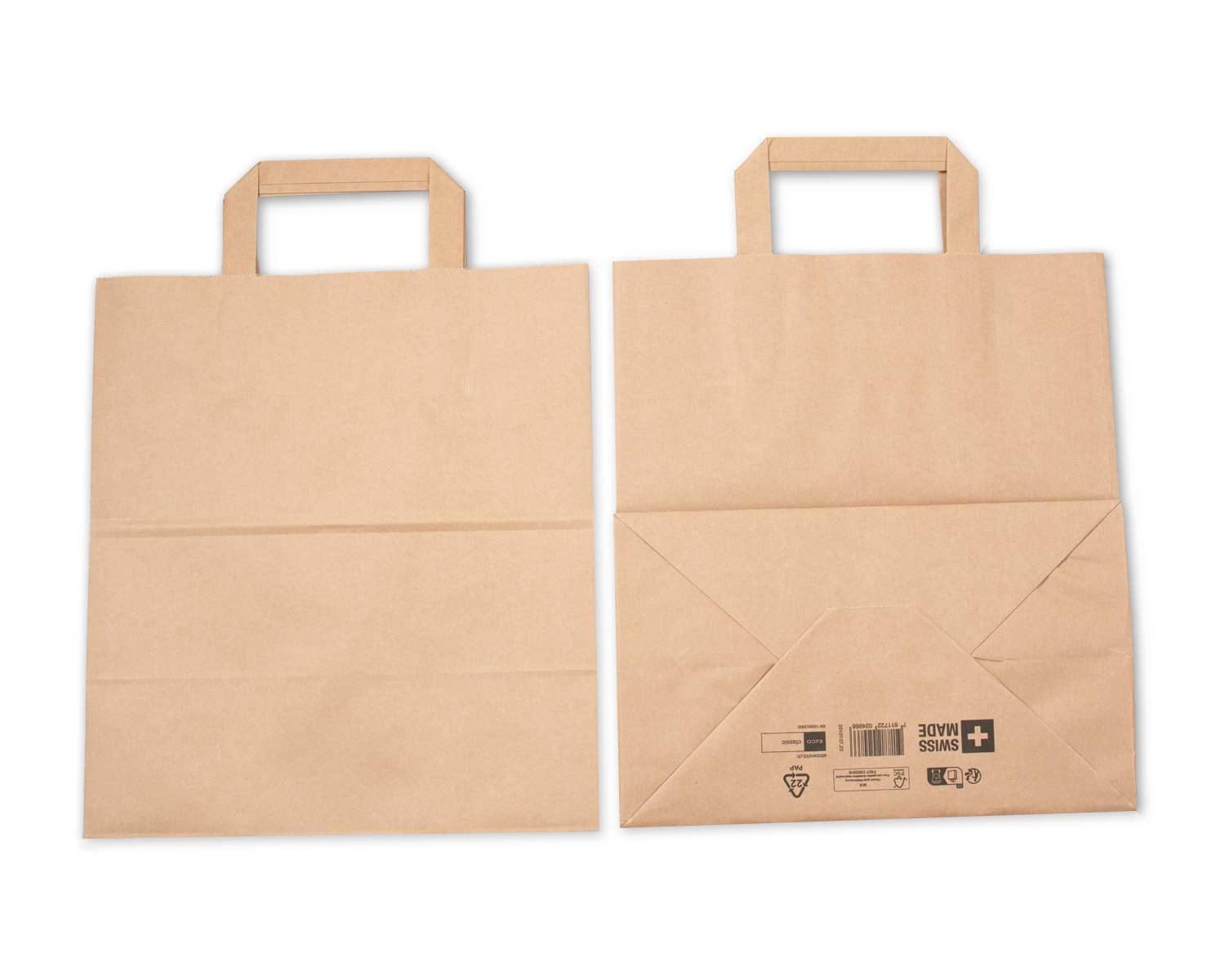 Diese vielseitige Papiertasche bietet ausreichend Platz für grössere Produkte wie Kleidung oder Lebensmittel. Sie ist eine nachhaltige Alternative für den täglichen Einkauf und überzeugt durch Schweizer Qualität. Die Tragetaschen werden in einer attraktiven roten Box zu je 50 Stück geliefert, was sie nicht nur ideal für den Eigenbedarf, sondern auch bestens für den Weiterverkauf geeignet macht.