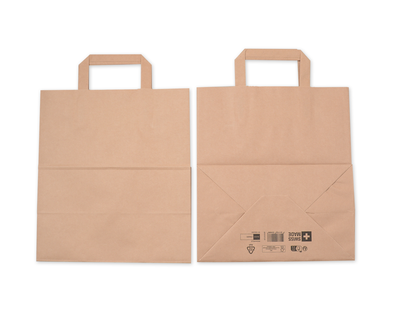 Diese vielseitige Papiertasche bietet ausreichend Platz für grössere Produkte wie Kleidung oder Lebensmittel. Sie ist eine nachhaltige Alternative für den täglichen Einkauf und überzeugt durch Schweizer Qualität.