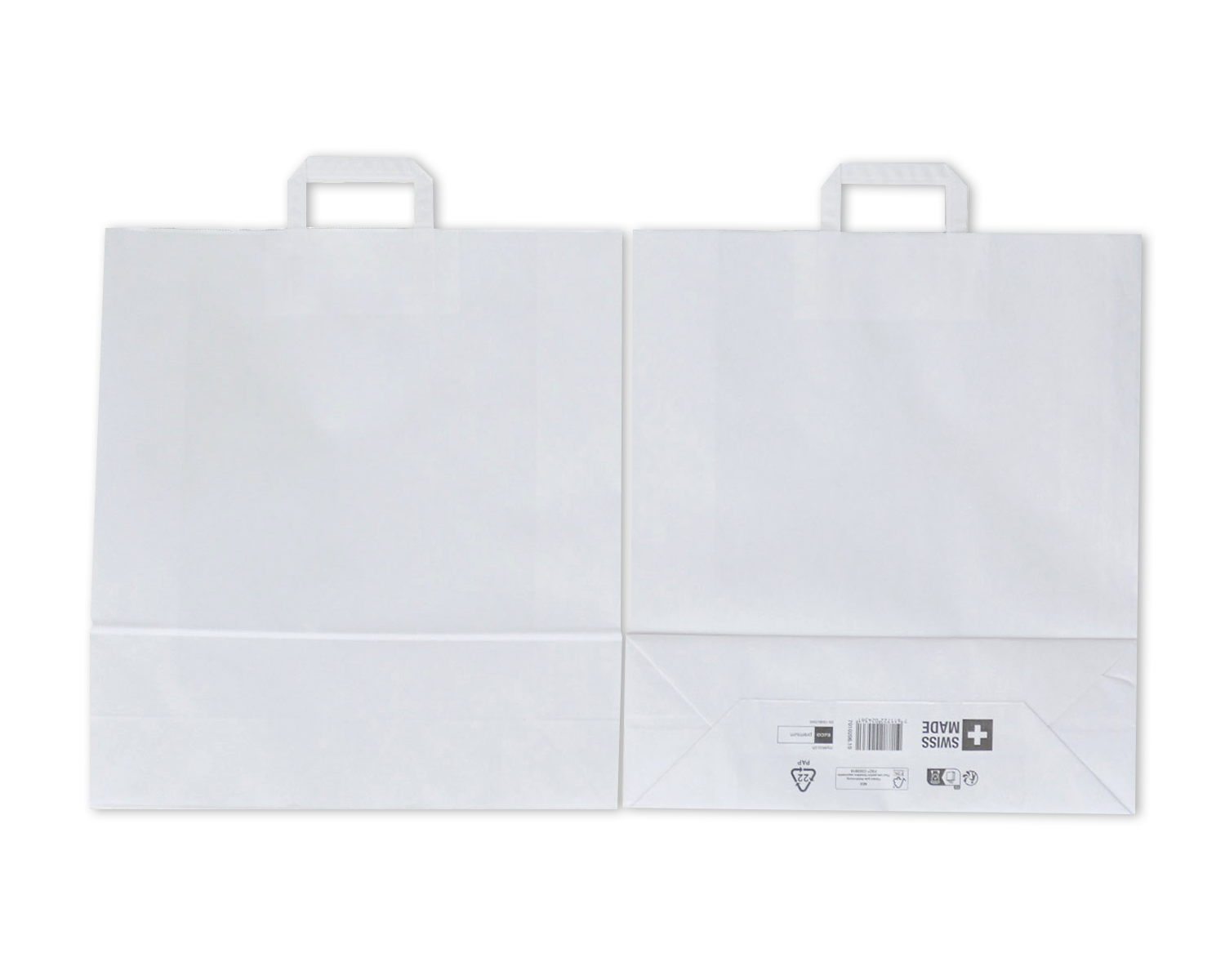 Diese extragrosse SWISSMADE Papiertasche ist optimal für den Transport von voluminösen Waren, wie Kleidung, Haushaltswaren oder sperrigen Geschenken. Perfekt für Kaufhäuser und Events, wo eine grosse, strapazierfähige Tasche benötigt wird. Die Tragetaschen werden in einer attraktiven roten Box zu je 50 Stück geliefert, was sie nicht nur ideal für den Eigenbedarf, sondern auch bestens für den Weiterverkauf geeignet macht.
