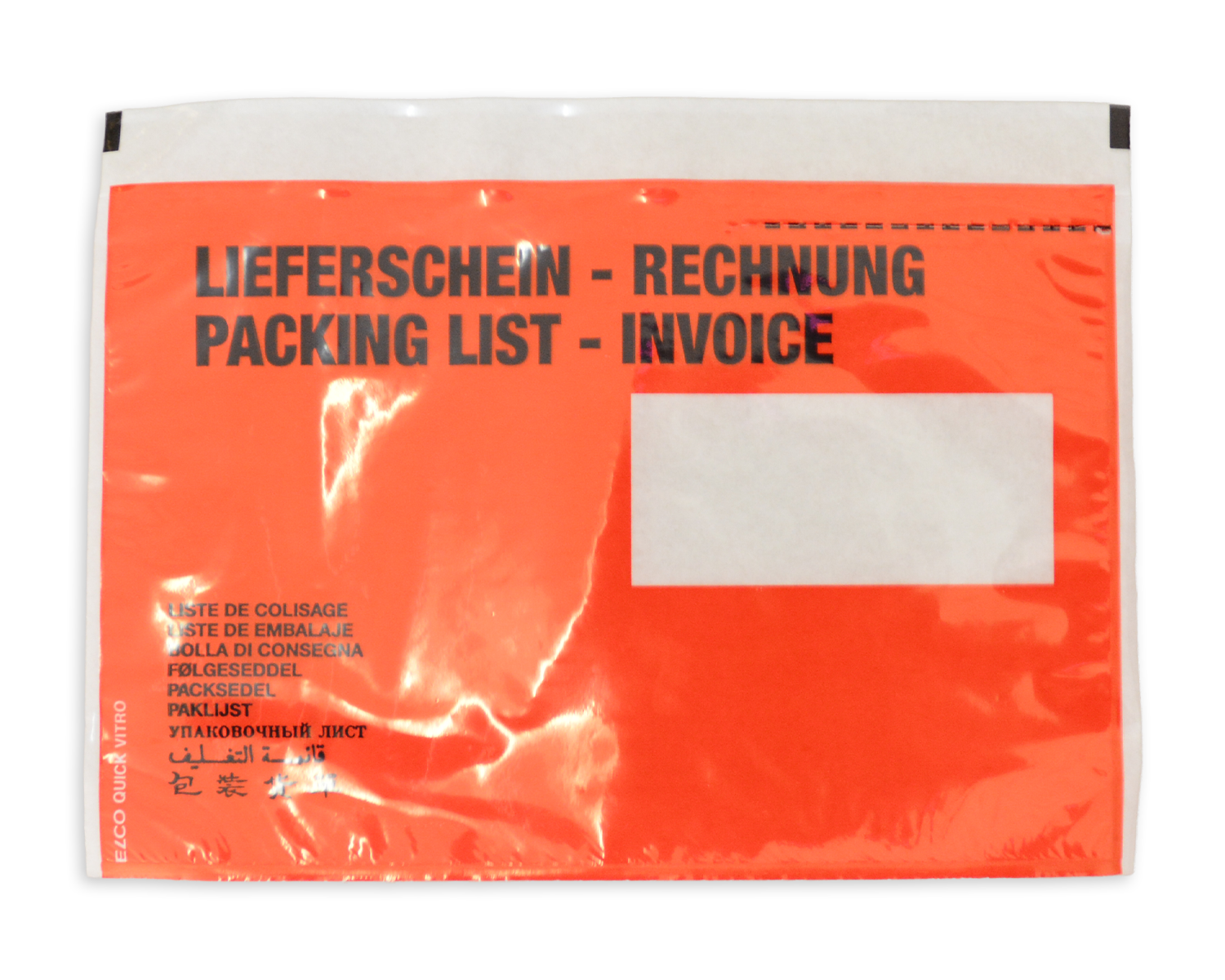 Die ELCO Quick Vitro Dokumententasche C5 ist mit dem roten Aufdruck „Lieferschein-Rechnung“ versehen und verfügt über ein Fenster auf der rechten Seite. Der Haftklebeverschluss und die Perforation ermöglichen eine einfache Handhabung und ein schnelles Öffnen. Ideal für den Versand von Begleitdokumenten auf Paketen und Versandtaschen.