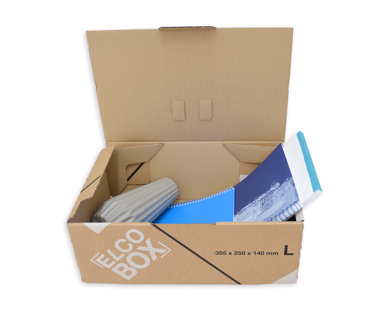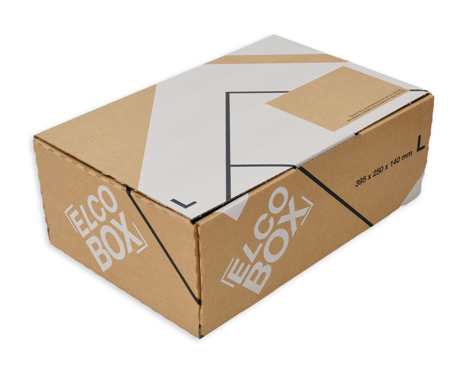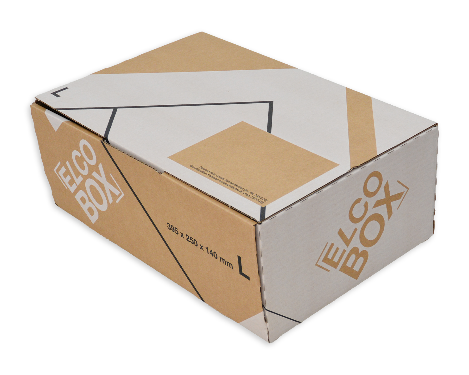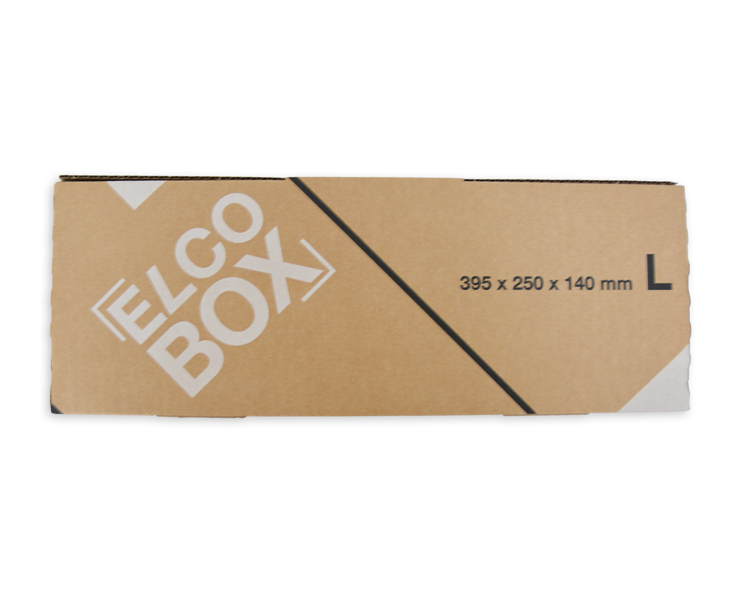 Die ELCO Box L in den Innenmassen 395 x 250 x 140 mm bietet eine stabile und sichere Versandlösung. Diese vielseitige Versandbox, gestaltet in braun und weiss, verfügt über einen praktischen Steckverschluss, der für sicheren Halt sorgt. Dank der flachliegenden Anlieferung ist die Lagerung platzsparend und der Aufbau erfolgt mühelos.