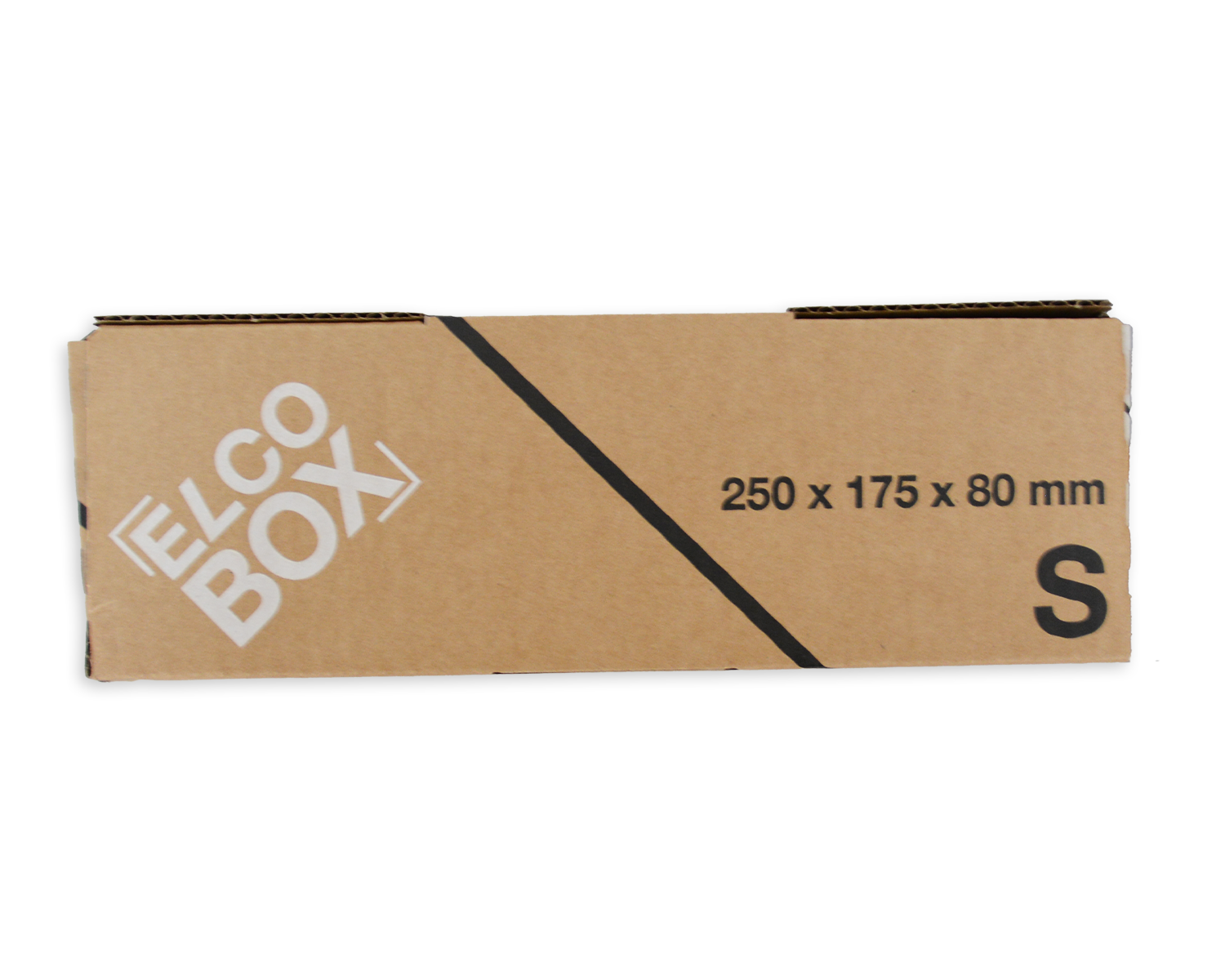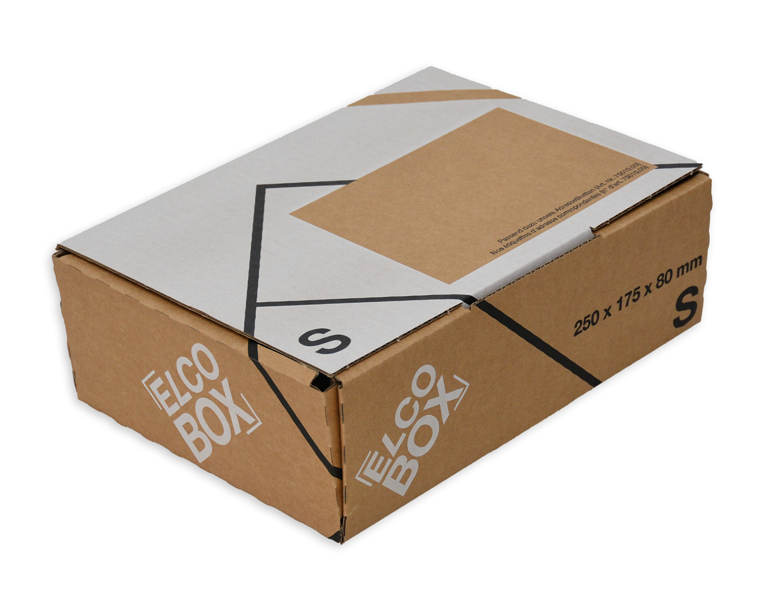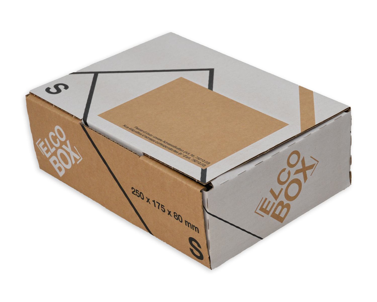 Die ELCO Box S in den Innenmassen 250 x 175 x 80 mm bietet eine stabile und sichere Versandlösung. Diese vielseitige Versandbox, gestaltet in braun und weiss, verfügt über einen praktischen Steckverschluss, der für sicheren Halt sorgt. Dank der flachliegenden Anlieferung ist die Lagerung platzsparend und der Aufbau erfolgt mühelos.