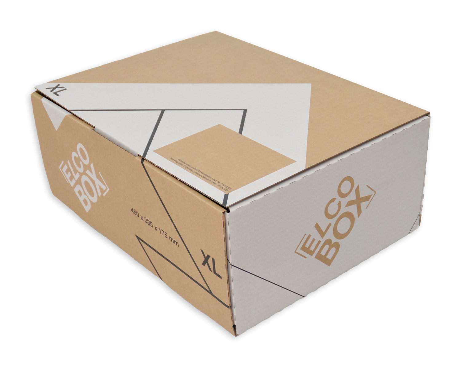 Die ELCO Box XL in den Innenmassen 460 x 335 x 175 mm bietet eine stabile und sichere Versandlösung. Diese vielseitige Versandbox, gestaltet in braun und weiss, verfügt über einen praktischen Steckverschluss, der für sicheren Halt sorgt. Dank der flachliegenden Anlieferung ist die Lagerung platzsparend und der Aufbau erfolgt mühelos.