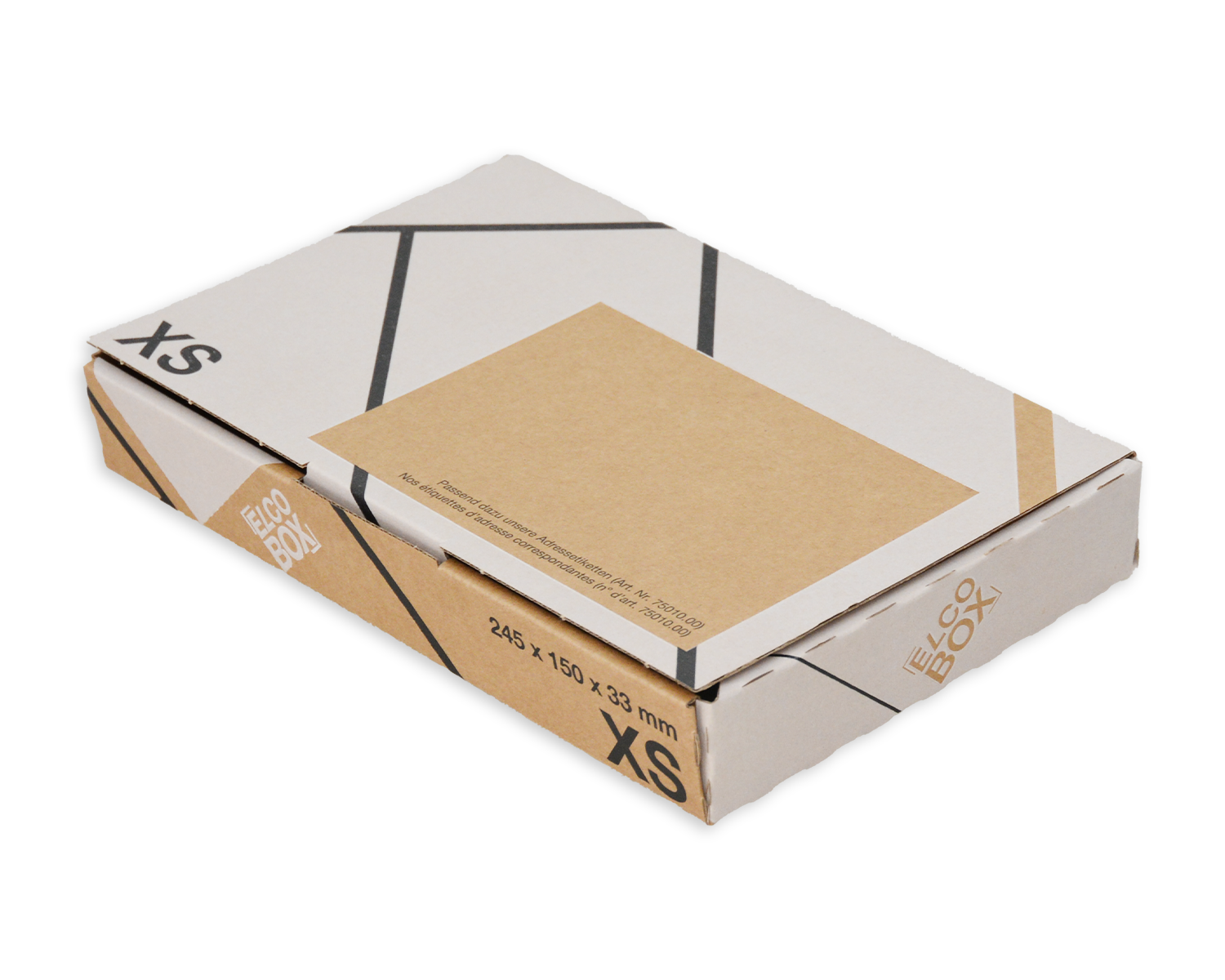 Die ELCO Box XS in den Innenmassen 245 x 150 x 33 mm bietet eine stabile und sichere Versandlösung. Diese vielseitige Versandbox, gestaltet in braun und weiss, verfügt über einen praktischen Steckverschluss, der für sicheren Halt sorgt. Dank der flachliegenden Anlieferung ist die Lagerung platzsparend und der Aufbau erfolgt mühelos.