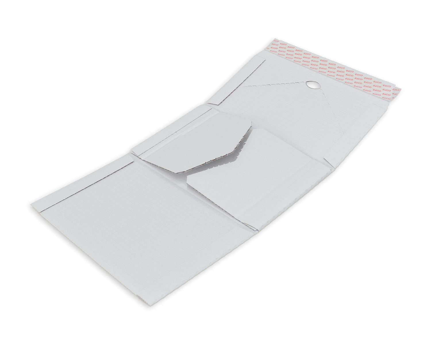 Höhenvariabel, schnell und sicher. Diese Universalverpackung verpackt schnell durch den Selbstklebestreifen und ist schnell geöffnet durch die Aufreisshilfe. Stosskanten sorgen für Rundumschutz und die Höhe passt sich variabel an den Inhalt an.