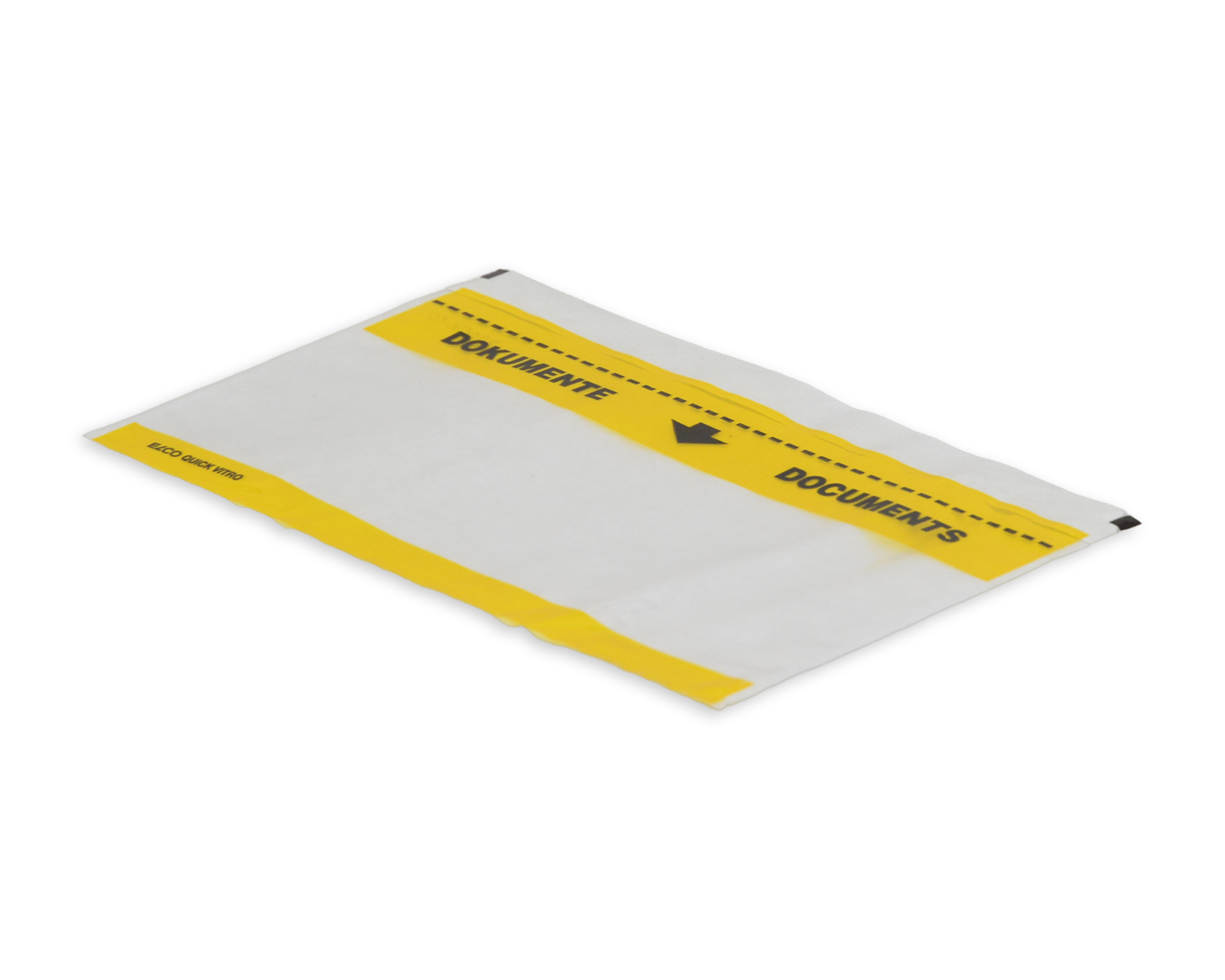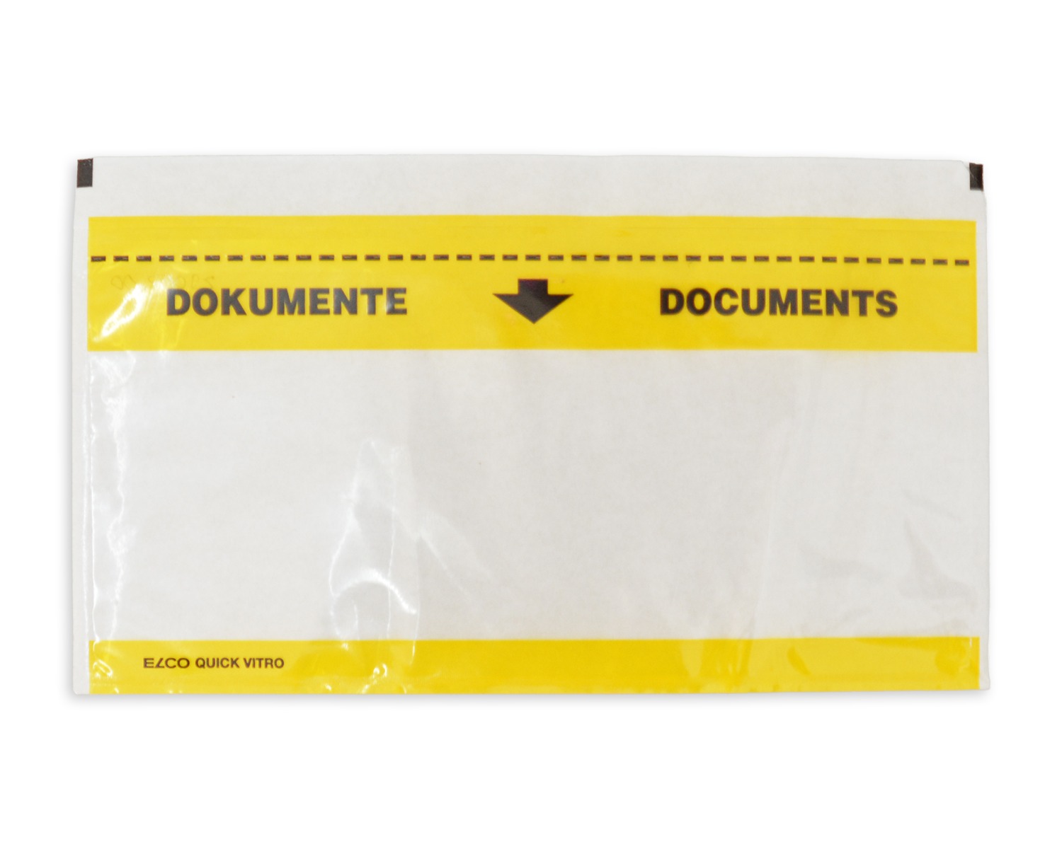 Diese ELCO Quick Vitro Dokumententasche im Format C6/5 DL bietet mit ihrem gelben Aufdruck „Dokumente“ eine deutliche Kennzeichnung für den Versand. Der Haftklebeverschluss und die Perforation erleichtern das sichere Handling und das Öffnen. Ideal für den professionellen Versand von Dokumenten auf Paketen oder Versandtaschen.