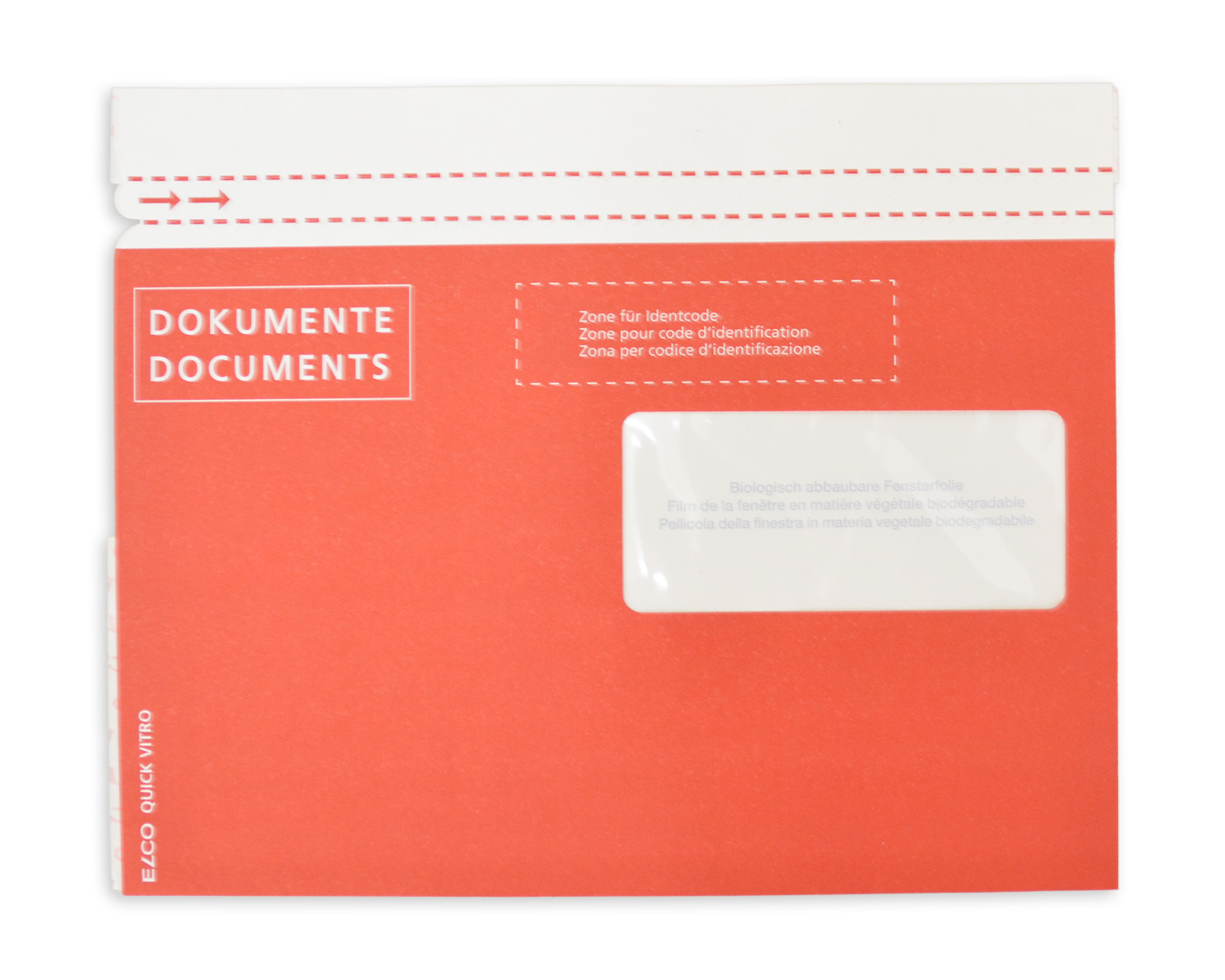 Die nachhaltige ELCO Quick Vitro Dokumententasche C5 mit rotem Aufdruck „Dokumente“ bietet eine umweltfreundliche Lösung für den Versand von Begleitpapieren. Hergestellt aus 110 g/m² Papier, verfügt sie über ein biologisch abbaubares Fenster rechts und einen 2-fachen Haftklebeverschluss. Die integrierte Perforation erleichtert das Öffnen der Tasche und schützt die Dokumente.