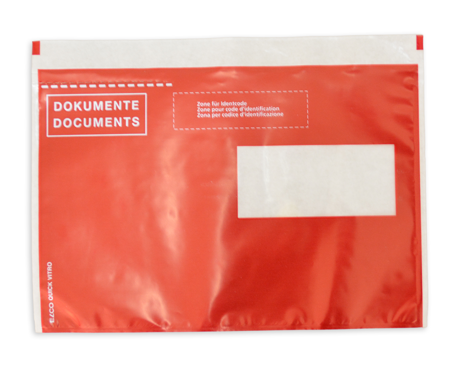 Die ELCO Quick Vitro Dokumententasche im C5-Format ist mit einem roten Aufdruck „Dokumente“ versehen. Das Fenster auf der rechten Seite und der Haftklebeverschluss sorgen für eine einfache Handhabung. Die Tasche ist ideal für den sicheren Versand von Dokumenten auf Paketen und Versandtaschen. Eine Perforation erleichtert das Öffnen für den Empfänger.