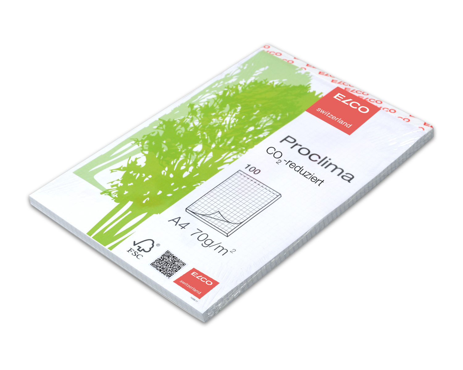 Le bloc-notes ELCO Proclima A4 offre 100 feuilles de papier blanc à carreaux de 4 mm et 70 g/m². Le papier est composé à 100% de vieux papiers certifiés FSC et est fabriqué de manière à réduire les émissions de CO2, sans pour autant perdre en qualité. Avec une blancheur élevée et des microperforations pour une séparation facile des feuilles. Idéal pour un travail de bureau efficace et respectueux de l'environnement.