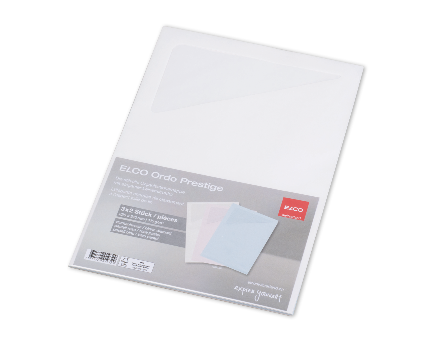 - Chemise de classement, ELCO Ordo Prestige, 220 x 310 mm, 115g/m2, blanc diamant/bleu pastel/rose pastel