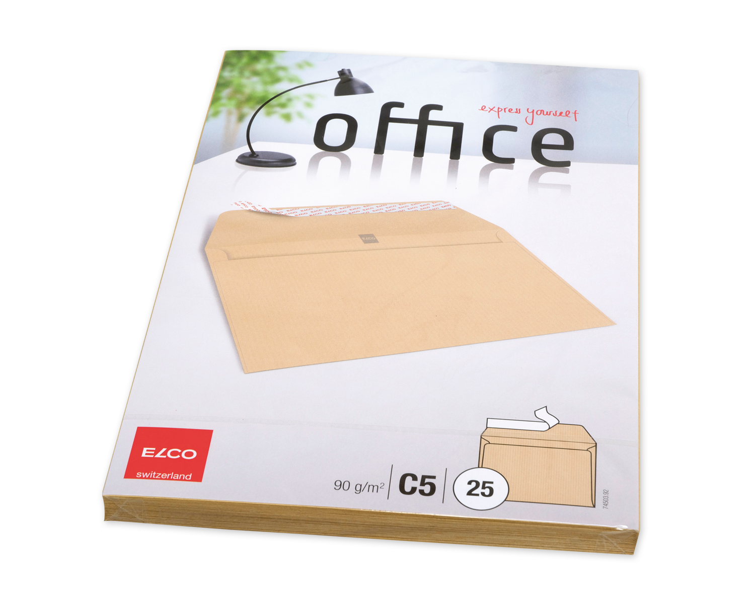 - Enveloppe, ELCO Office, C5, Sans fenêtre, Fermeture auto-adhésive, 90g/m2, brun