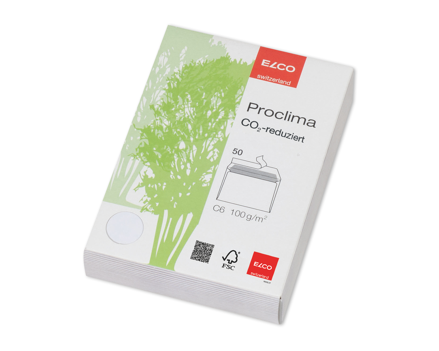 ELCO Proclima Enveloppe, C6, sans fenêtre, fermeture auto-adhésive, blanche, dans une boîte en carton pratique avec une excellente opacité et une impression intérieure ELCO Proclima. Proclima - réduction du CO2 : ELCO mise sur la durabilité - également dans la communication bureautique. Le papier ELCO Proclima ne se distingue pas visuellement du papier offset et offre la blancheur élevée de 100 ISO. Pourtant, il est composé à 100% de vieux papiers certifiés FSC. Sa production génère nettement moins de CO2 par tonne.