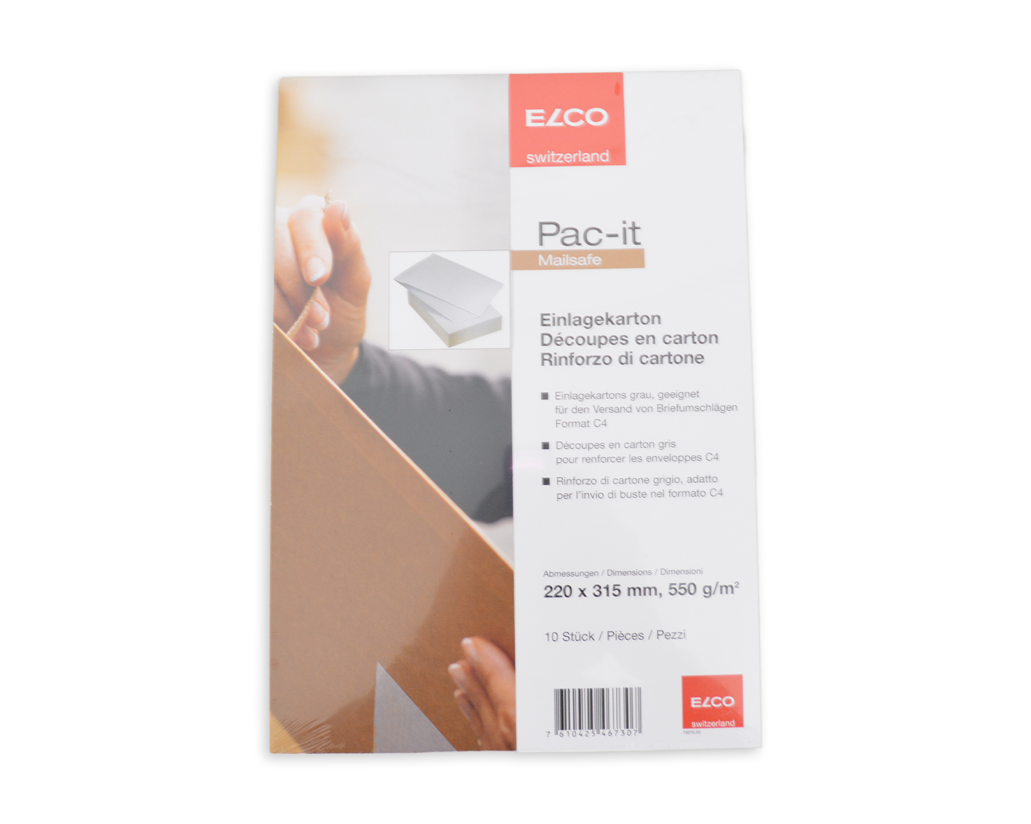 - Carton d'insertion, ELCO Mailsafe, 220 x 315 mm, 550g/m2, gris
