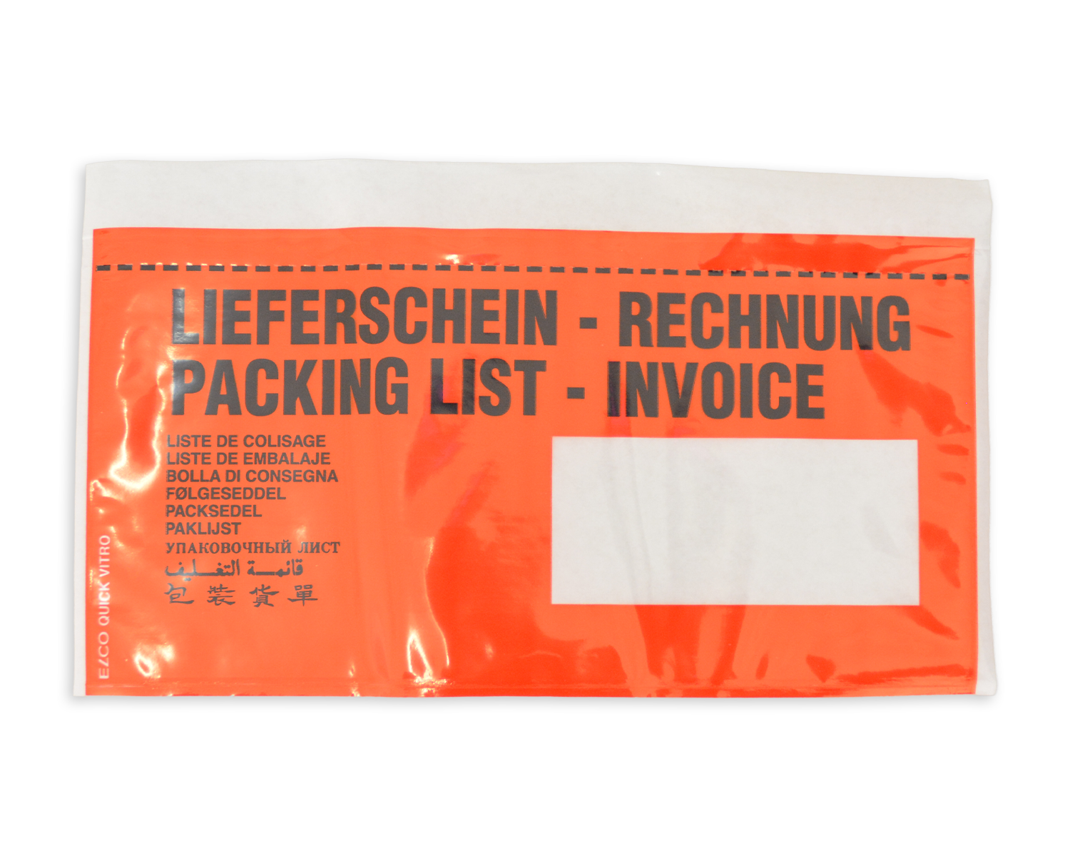 La pochette pour documents ELCO Quick Vitro au format C6/5 DL avec impression rouge « Bon de livraison - Facture » est idéale pour l'envoi de pochettes d'expédition et de colis. Elle dispose d'une fenêtre sur le côté droit et d'une fermeture autocollante pour un scellage sûr. La perforation permet une ouverture facile.