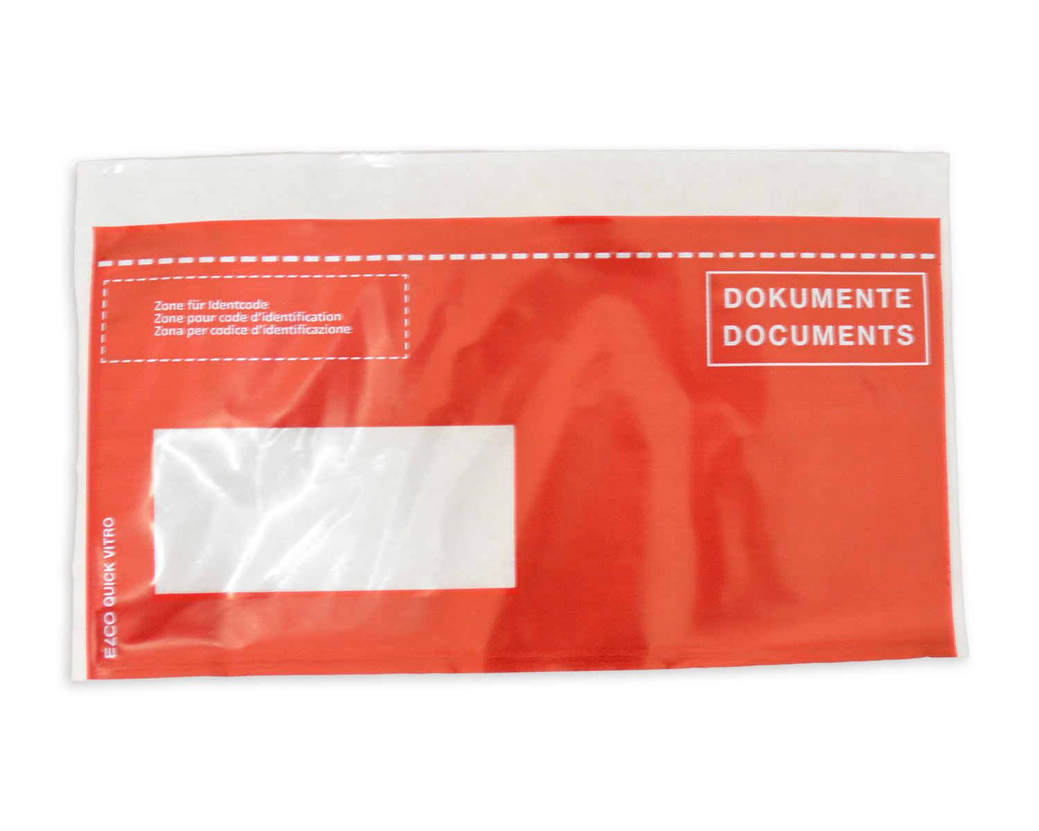 La pochette pour documents ELCO Quick Vitro au format C6/5 DL est munie d'une impression rouge « Documents » et d'une fenêtre sur le côté gauche. La fermeture autocollante et la perforation assurent une manipulation aisée et une ouverture sûre. Cette pochette convient parfaitement à l'envoi de documents sur des paquets ou des pochettes d'expédition.