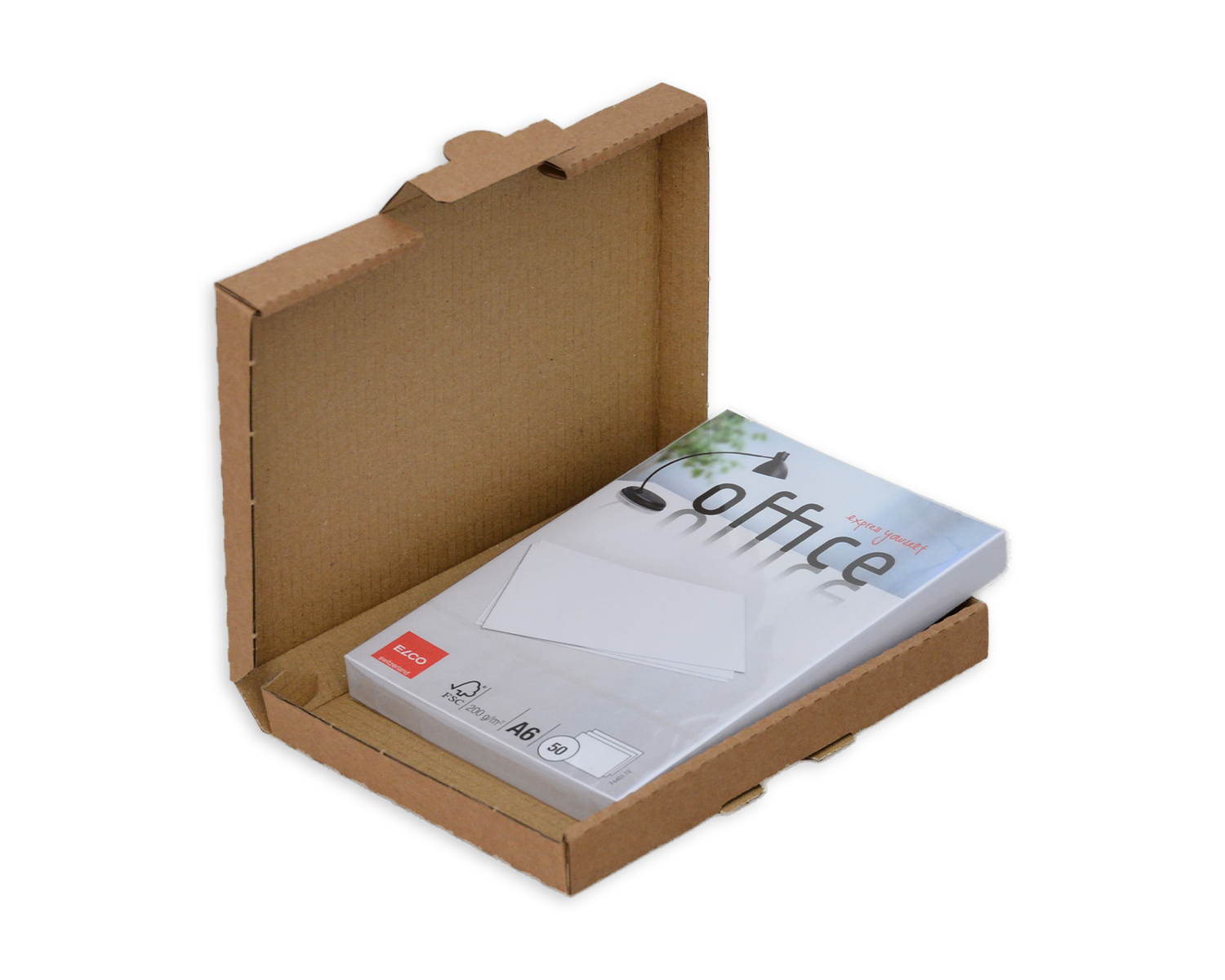 La boîte à rabat d'une seule pièce est facile à fermer et à ouvrir. Grâce à sa faible épaisseur, elle peut être envoyée au tarif de la poste aux lettres et permet ainsi d'économiser des frais de port.