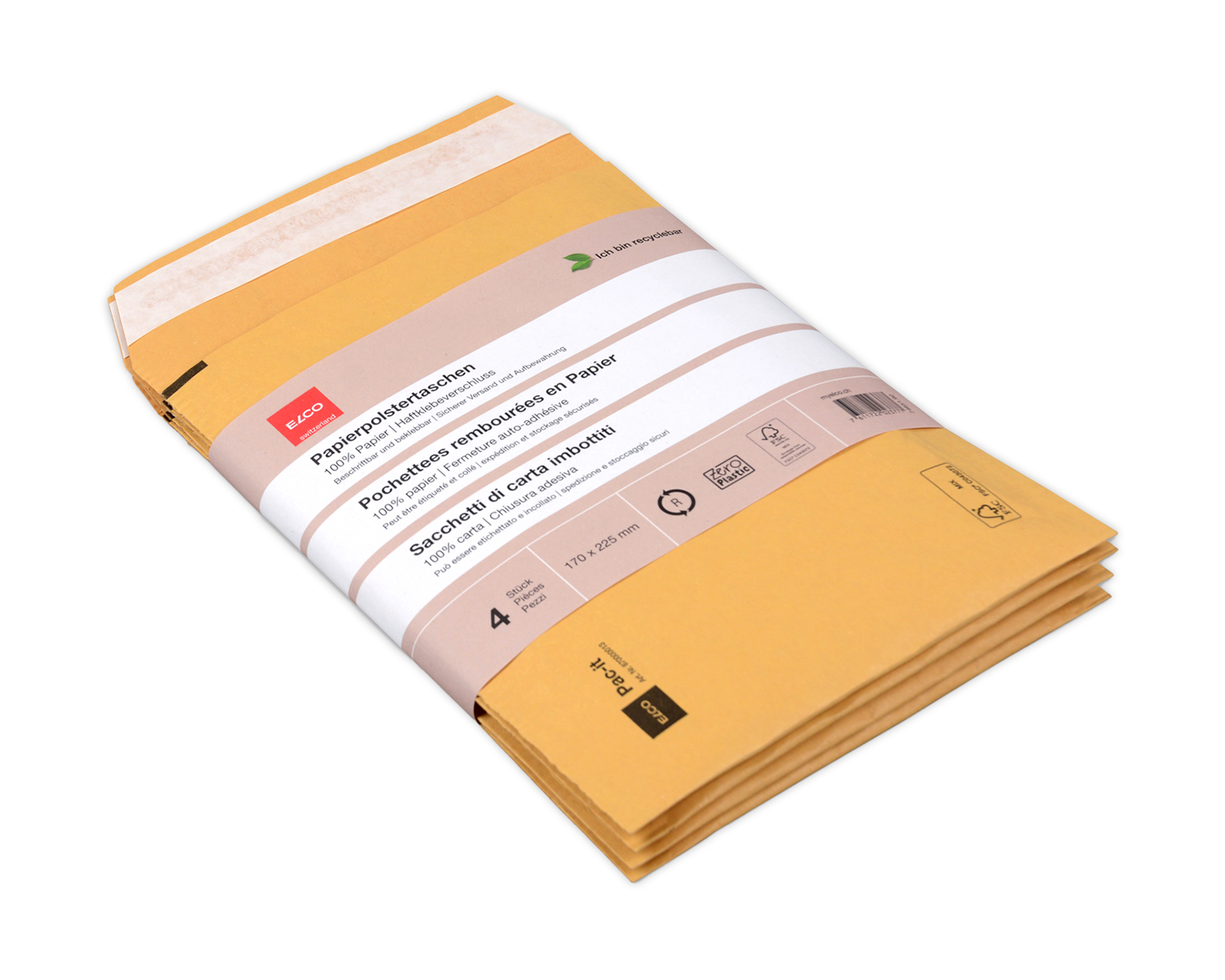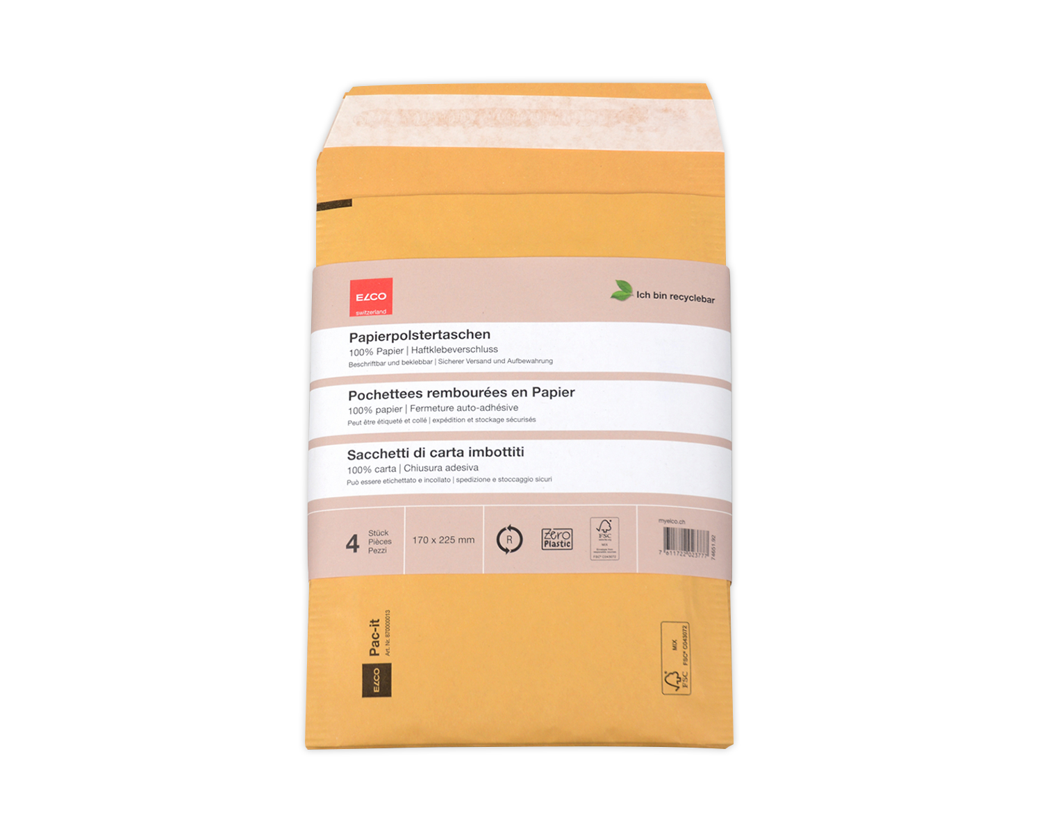 L'enveloppe rembourrée en papier ELCO, 100% papier (certifié FSC) et recyclable, pour l'envoi et la conservation d'objets sensibles et fragiles. L'intérieur de l'enveloppe est revêtu d'une double couche protectrice et flexible de papier 100 g/m2 qui stabilise l'enveloppe, amortit les chocs et prévient ainsi les rayures, les plis et les cassures. Pour une fermeture sans effort, la pochette est munie d'une bande autocollante.